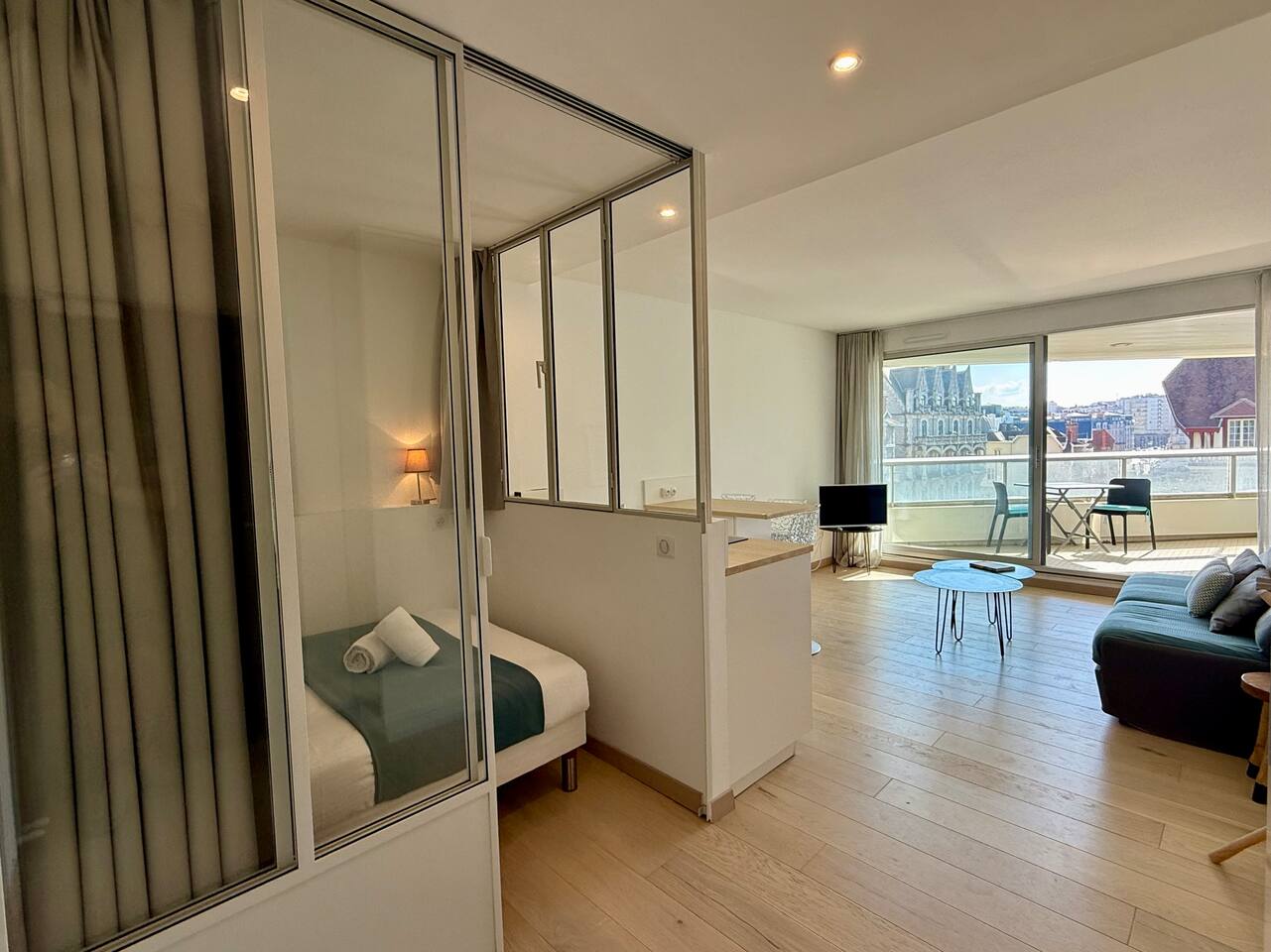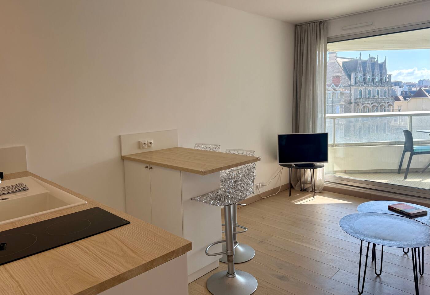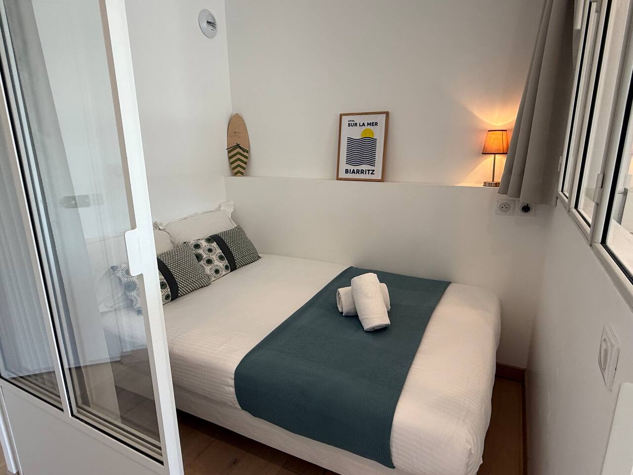 Dès l’entrée, la décoration soignée et la luminosité naturelle captivent. Le salon s’ouvre sur une grande baie vitrée, laissant place à une belle terrasse de 12 m², idéale pour profiter du soleil avec une vue agréable sur le jardin de la residence et les bâtiments historiques du quartier, on remarquera même un petit aperçu sur l’océan. Un espace chaleureux et fonctionnel vous attend avec un canapé-lit équipé d’un véritable matelas en 160 cm, une TV et une cuisine moderne entièrement équipée avec bar. Côté nuit, une alcôve fermée par une verrière offre un cocon intime avec un lit en 140 cm, parfait pour un adulte seul ou un enfant. La salle de bain avec baignoire et le WC indépendant complètent les équipements de ce cocon. Pourquoi choisir cet appartement ? ✔ Un emplacement exceptionnel : à 1 minute à pied de la plage du Miramar et à proximité immédiate des commerces et restaurants. ✔ Un cadre haut de gamme : résidence sécurisée, concierge et accès possible aux prestations hôtelières du Sofitel Miramar. ✔ Des équipements modernes : climatisation, Wi-Fi inclus, machine Nespresso, lave-linge. ✔ Une accessibilité idéale : transports en commun et navettes gratuites en été pour se déplacer facilement. ✔ Une expérience élégante et confortable, adaptée aux voyageurs en quête de bien-être et de sérénité. Conditions de réservation 🕓 Check-in flexible à partir de 16h | Check-out à 10h 🚭 Non-fumeur, même sur la terrasse. 🚫 Animaux non acceptés. 🎉 Pas de fêtes ni de nuisances sonores. Que vous veniez découvrir Biarritz en toute sérénité ou profiter de la proximité immédiate de l’océan, cet appartement est l’adresse idéale pour un séjour inoubliable.