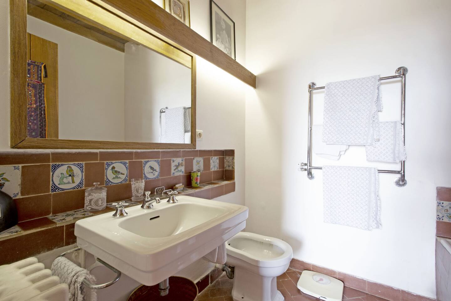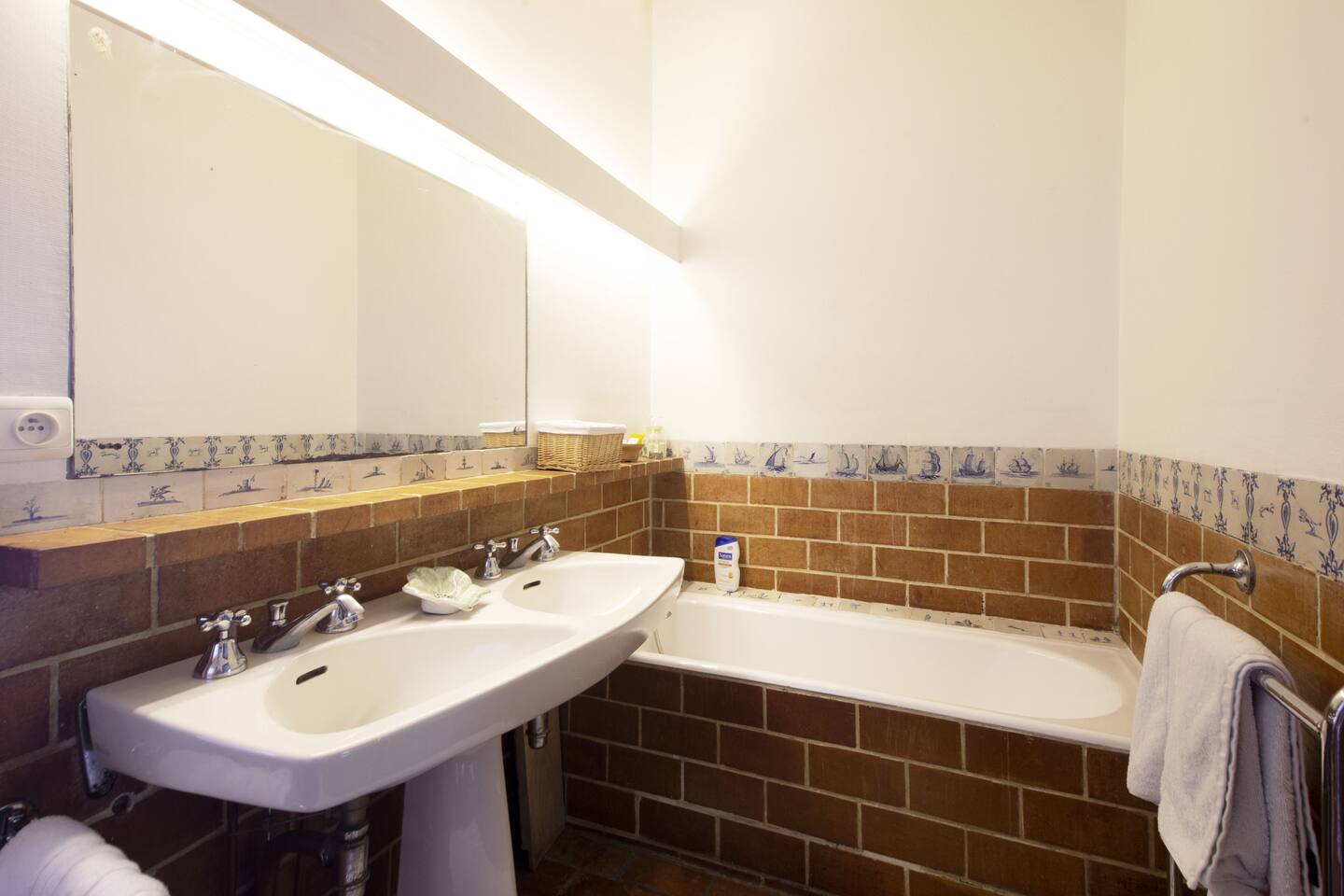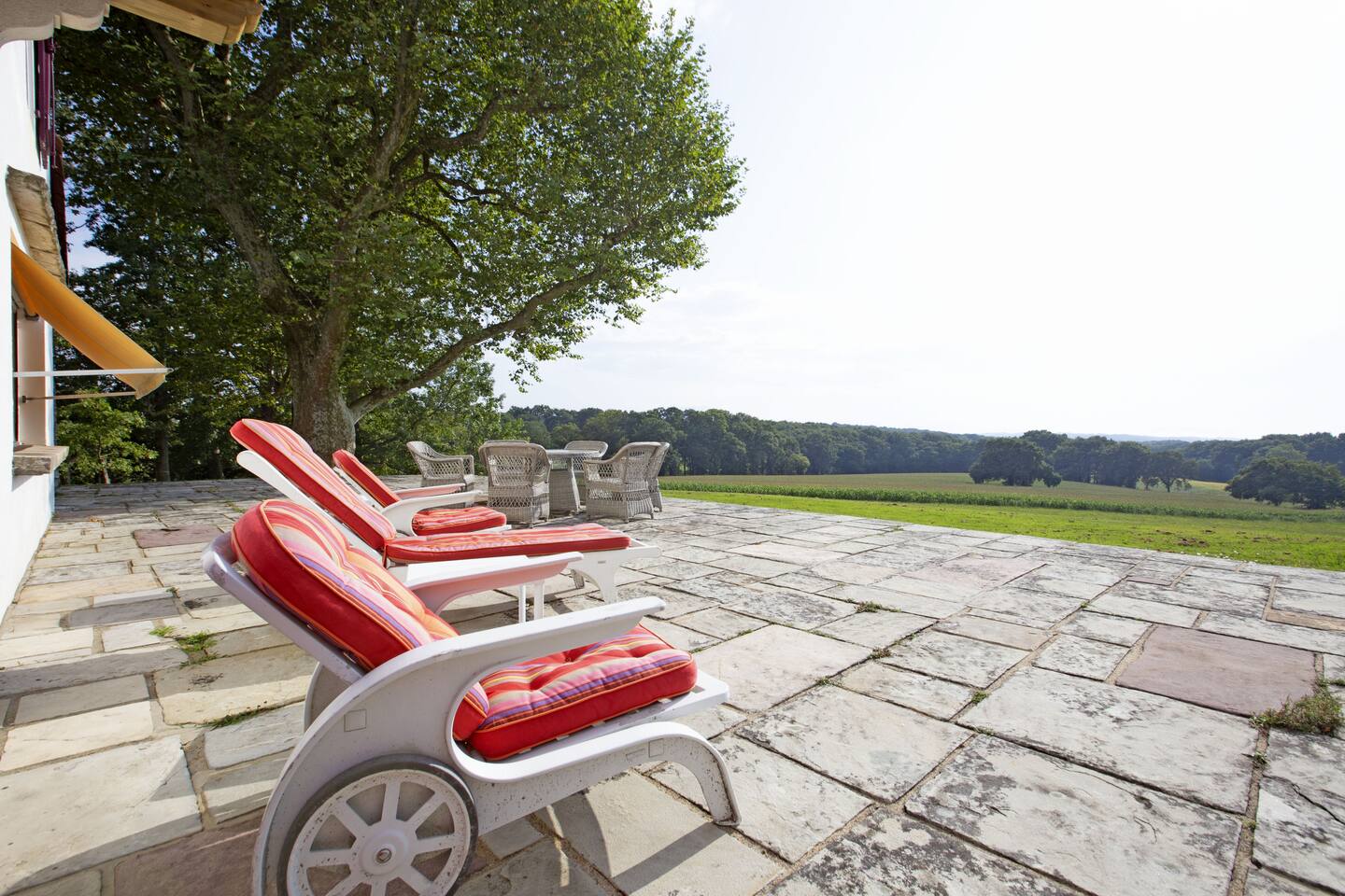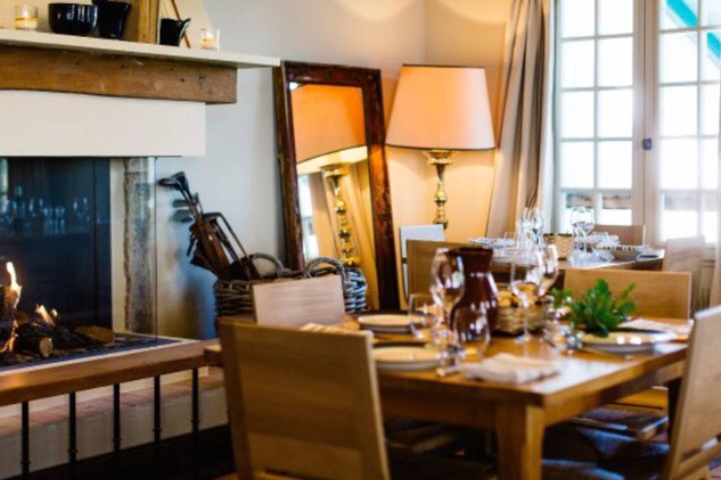 À l’intérieur, le charme opère immédiatement. Le salon s’ouvre en deux espaces de vie : d’un côté, un piano ancien, une bibliothèque garnie, des portraits, des bustes, des gravures, et de l’autre, un coin plus intime réchauffé par une cheminée charentaise monumentale en pierre. Chaque meuble, chaque objet semble avoir voyagé avant de trouver sa place ici. La salle à manger, elle aussi avec une cheminée en pierre avec broche rotissoire accueille les repas dans une ambiance feutrée et élégante, sous le regard d’un buffet classique avec de la vaisselle ancienne et des oiseaux en céramique. La cuisine traditionnelle basque, vaste et accueillante, invite à la convivialité. On y prépare les produits du marché, on y partage les repas du matin comme les plats mijotés du soir. Les chambres, réparties dans la maison, sont toutes différentes. Mobiliers anciens, étoffes naturelles, objets patinés par le temps : elles incarnent la douceur, le calme, l’harmonie. Mais Enea Agiri, c’est aussi un monde extérieur à part entière. Dès les premières marches de la terrasse, le regard se perd dans une vaste plaine ouverte, bordée d’arbres centenaires. La vue est saisissante, avec en toile de fond les montagnes du Pays Basque. Un sentiment de liberté vous enveloppe. Sous la véranda végétale, les repas d’été se déroulent dans la fraîcheur naturelle d’une tonnelle vivante, où les feuillages filtrent la lumière. Plus loin, une autre terrasse, plus intime, s’abrite sous un grand platane, parfaite pour les petits-déjeuners tranquilles ou les soirées douces. La piscine, entourée de végétation, s’intègre parfaitement au paysage. Elle offre un coin de fraîcheur et de silence, comme suspendu dans le temps. Le jardin, immense et ouvert, laisse place aux jeux d’enfants, aux siestes à l’ombre ou aux simples balades les pieds nus dans l’herbe. Partout, la nature est là, généreuse, enveloppante. À seulement deux kilomètres du village d’Arcangues, à cinq minutes du golf, à sept minutes de la gare de Biarritz, dix des plages et quinze de l’aéroport, Enea Agiri est un point d’ancrage idéal pour découvrir la région, ou simplement s’y poser, sans autre programme que celui de respirer. Enea Agiri, c’est une maison de caractère et de cœur. Un lieu qui rassemble, qui apaise, qui inspire. Enea Agiri vous attend.