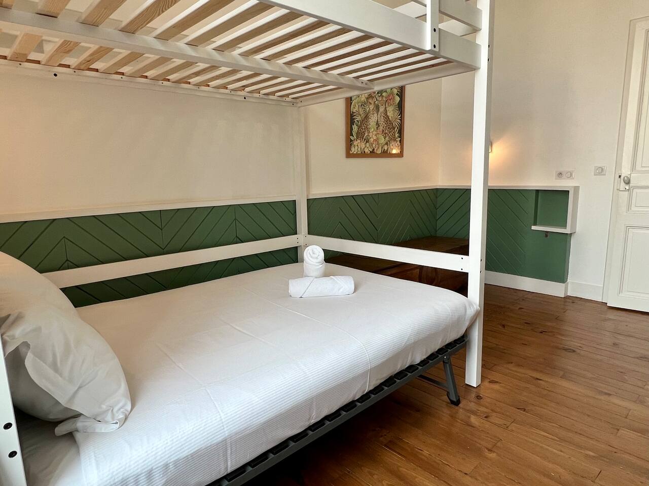 The accommodation can accommodate up to 4 people and is composed as follows: - A spacious living room overlooking the large beach, the lighthouse, and the casino. - A family suite with a 160-sized bed and an adjoining bathroom. - A second bedroom with a 140-sized bed and a connected sink. - A bathroom with a bathtub and toilet. - An individual toilet. - A fully equipped kitchen in a row. - A private parking space on-site. "The added advantage of everything being within walking distance": - 1 minute from the large beach. - 5 minutes from the local producers market at Les Halles, open every day from 7 am to 1 pm. - 5 minutes from the Gare du Midi (performance hall). - 10 minutes from the Côte des Basques. "Travel light" - the rental includes neatly made beds, bath towels, rugs, dish towels, toilet paper, shower gel, and shampoo. Beach set rental is available. Baby crib rental is available.