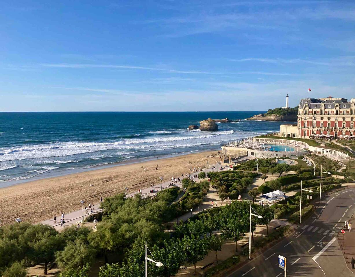 Ce studio de 25m2 est idéal pour tout type de séjour. En plein centre de Biarritz, dans une résidence de Standing, surplombant l'Océan, il offre une vue spectaculaire sur la Grande Plage de Biarritz et le large. L'emplacement idéal vous permettra de profiter de la ville de Biarritz, sans avoir à vous soucier des trajets.