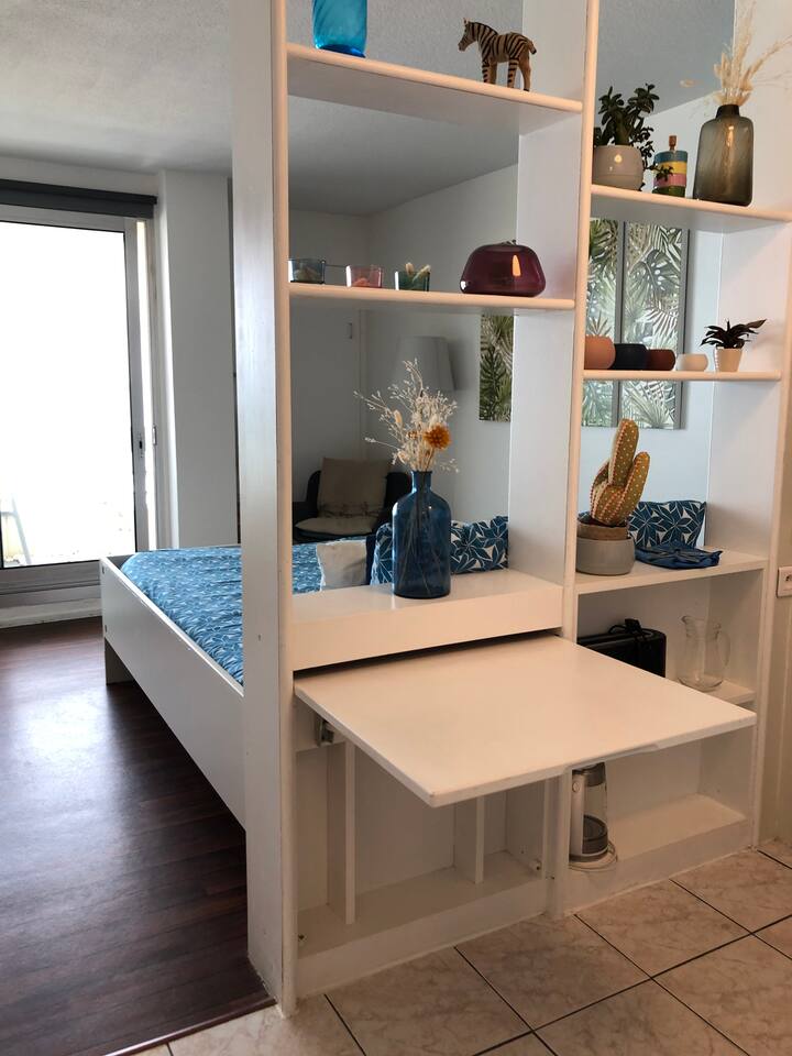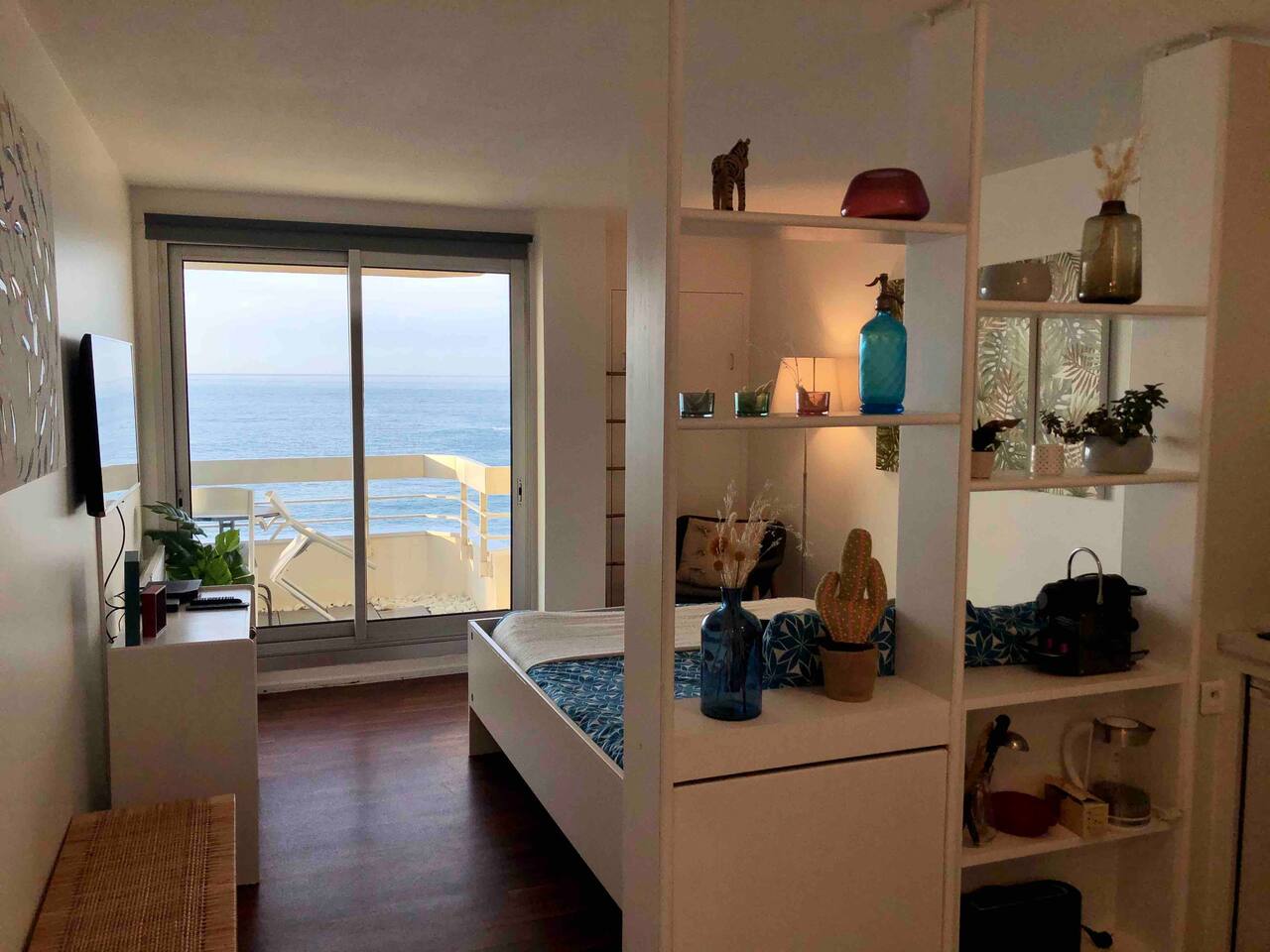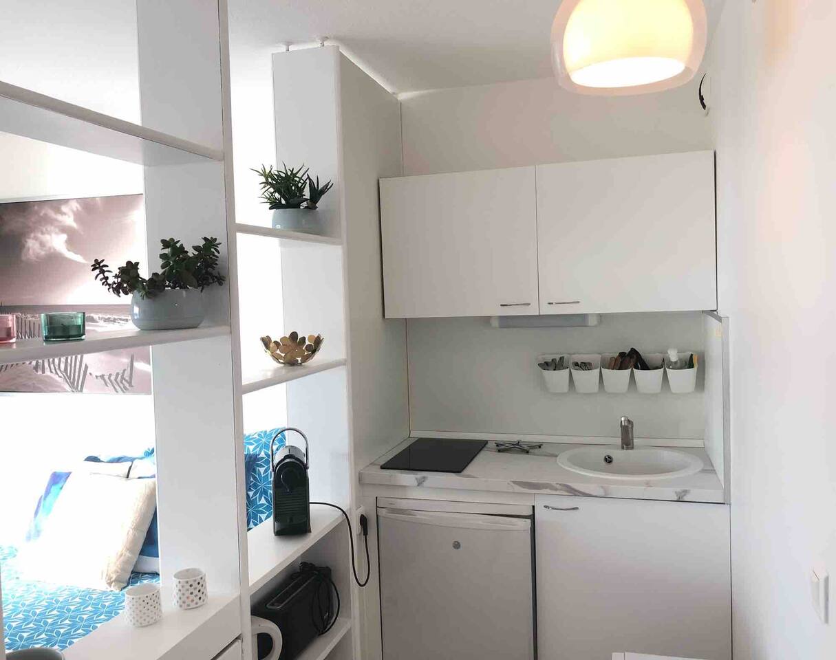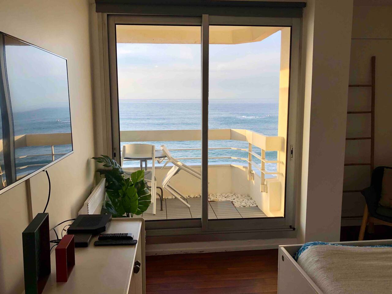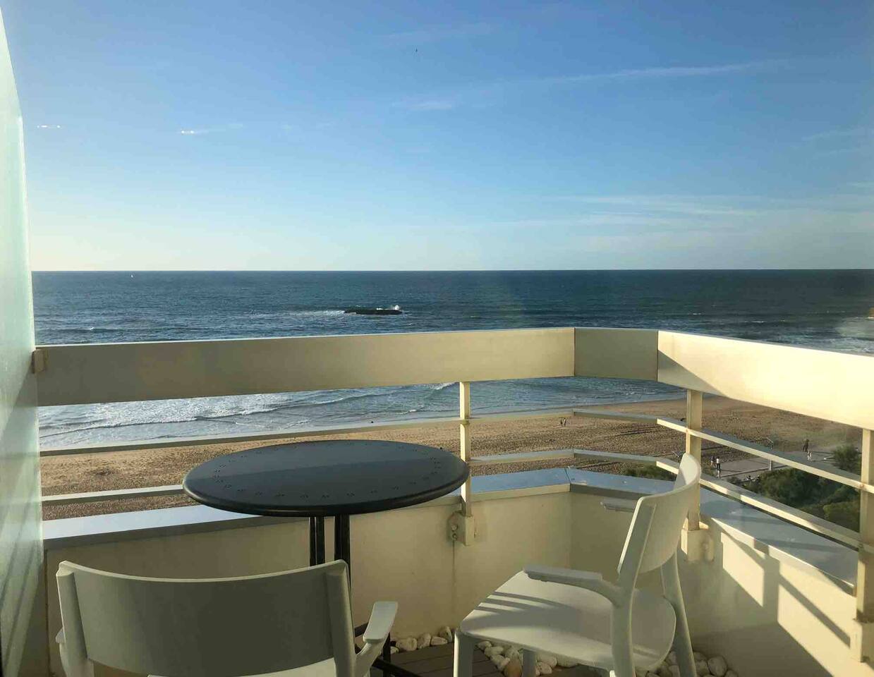 L'appartement Harea est aussi disponible sur notre site Destination Côte Basque. Vous bénéficierez de l'accès à la piscine de la résidence avec bains de soleil. Le studio se situe au 4ème étage avec ascenseur d'une résidence de standing prisée de Biarritz, le confort est assuré grâce à sa cuisine équipée au lit en 160 et la vue exceptionnelle. L’espace est bien équipé avec tout ce dont vous avez besoin pour un séjour agréable. Vous aurez accès à une cuisine ouverte entièrement équipée (plaques à induction, micro-onde, frigo, machine à café Nespresso...), des espaces de vie confortables (Petite table pour déjeuner ou travailler tranquillement), ainsi qu’aux indispensables comme le Wi-Fi ou la TV avec un ensembles de chaines disponibles. Vous disposerez d’une salle d’eau avec baignoire et WC indépendants. ✔ Balcon avec vue imprenable sur l’océan et le coucher de soleil ✔ Accès direct à la Grande Plage et au front de mer ✔ Accès à la piscine (juin à septembre) ✔ Cuisine bien équipée avec articles de cuisine essentiels ✔ Résidence calme et sécurisée avec ascenseur ✔bars, restaurants, shopping à pied