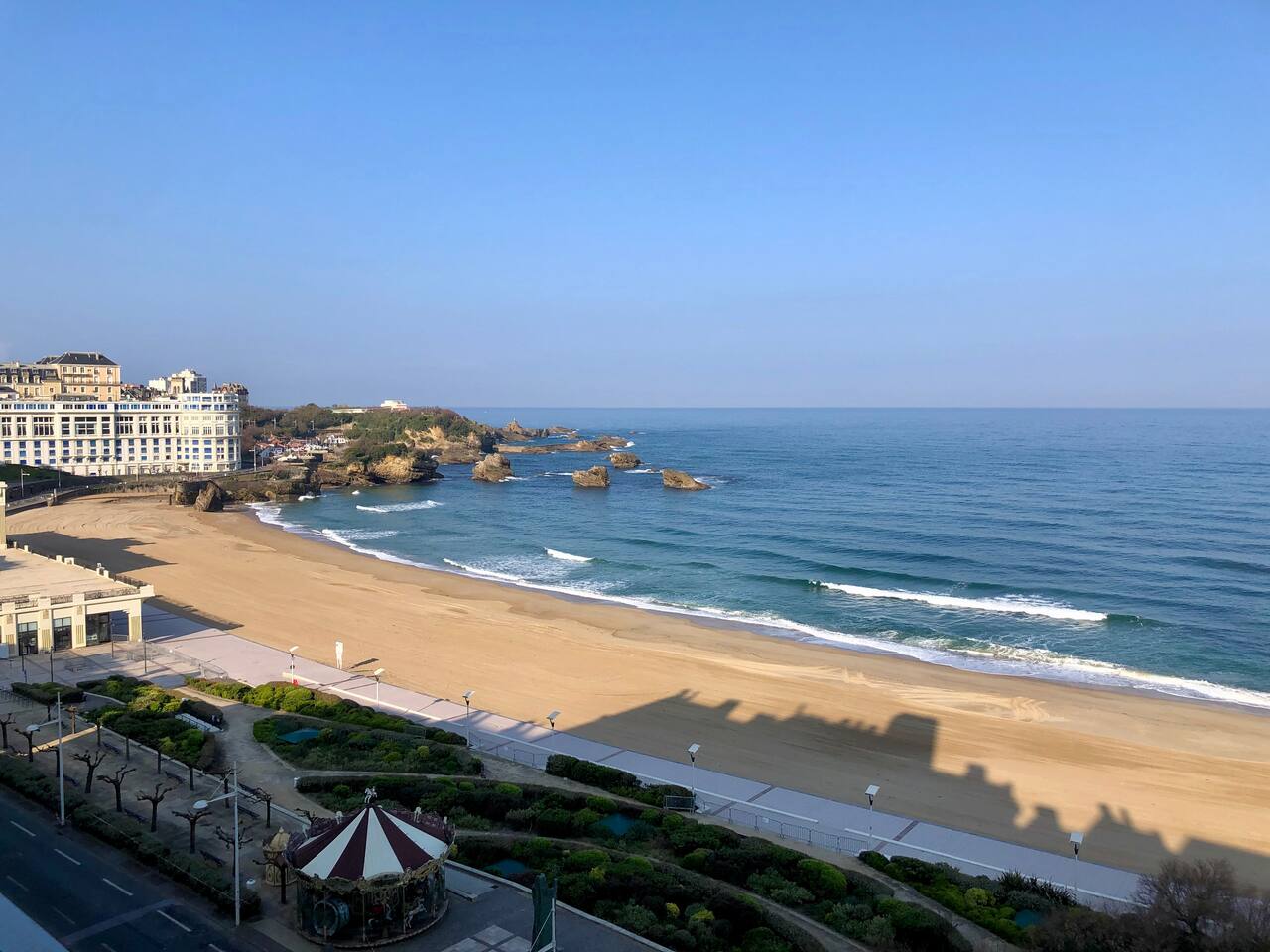 Situé en à la Grande Plage l'appartement est proche de toutes les commodités et transports en commun. À 15 mètres des plages mais surtout a moins de 15 minutes à pied de tous les points d'intérêt de Biarritz comme: Le Quartier des Halles, la Place Clémenceau, le Musée de La Mer et le Rocher de La Vierge, Le Phare de Biarritz et plus encore.
