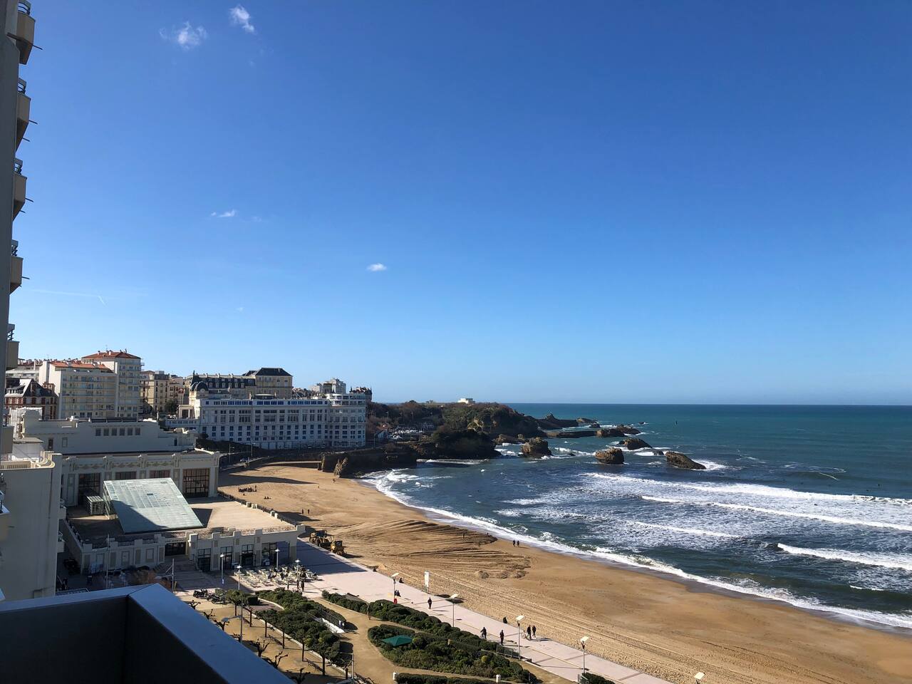 Situé en à la Grande Plage l'appartement est proche de toutes les commodités et transports en commun. À 15 mètres des plages mais surtout a moins de 15 minutes à pied de tous les points d'intérêt de Biarritz comme: Le Quartier des Halles, la Place Clémenceau, le Musée de La Mer et le Rocher de La Vierge, Le Phare de Biarritz et plus encore.