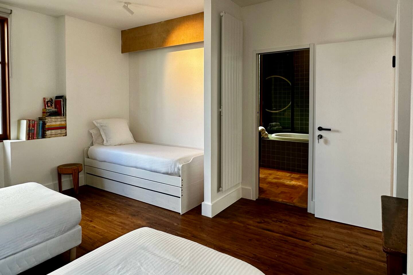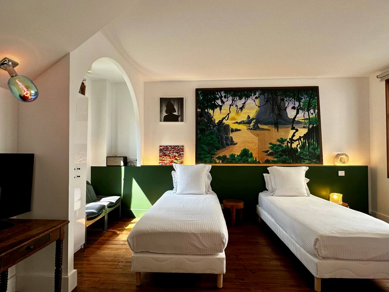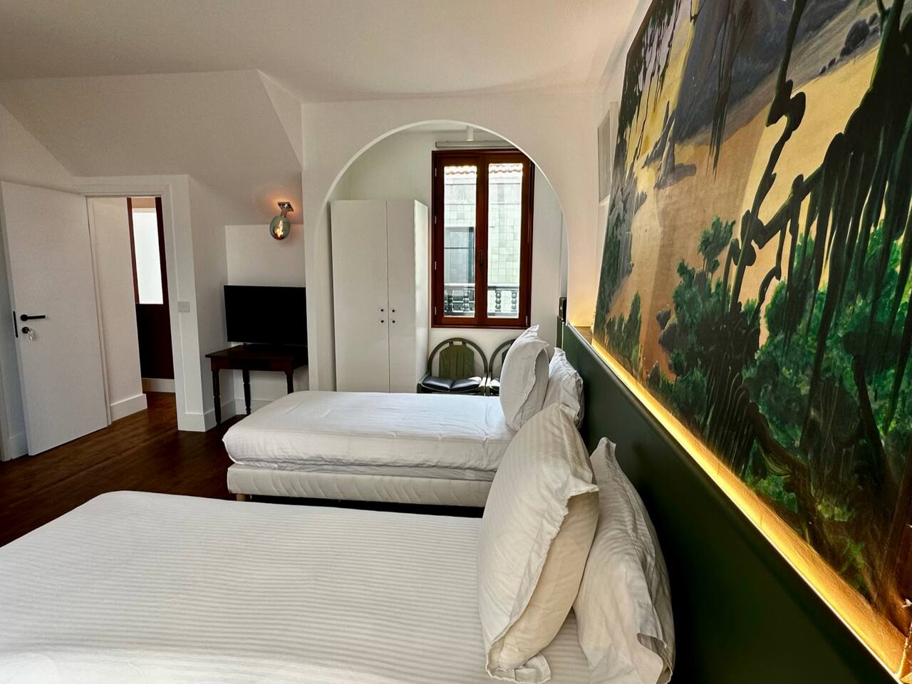 Ici vous louerez la chambre IBAÑETA dans cette demeure exceptionnelle. Vous apprécierez le confort des lits préparés avec soin, promesse de douces nuits après des journées palpitantes. La maison offre de généreux espaces de vie à la décoration pointue à votre disposition collective. Profitez de la petite cour végétalisée pour un moment de détente. Vous bénéficierez d'une connexion Wi-Fi haut débit, de serviettes de bain fournies et d'un service de ménage sur demande. Découvrez le charme de la Maison MAÏTÉ, votre refuge secret au cœur de Biarritz.