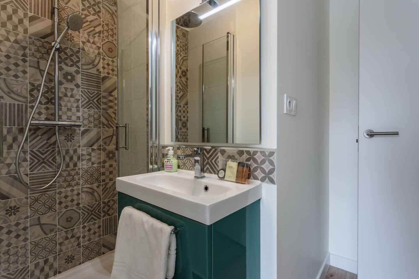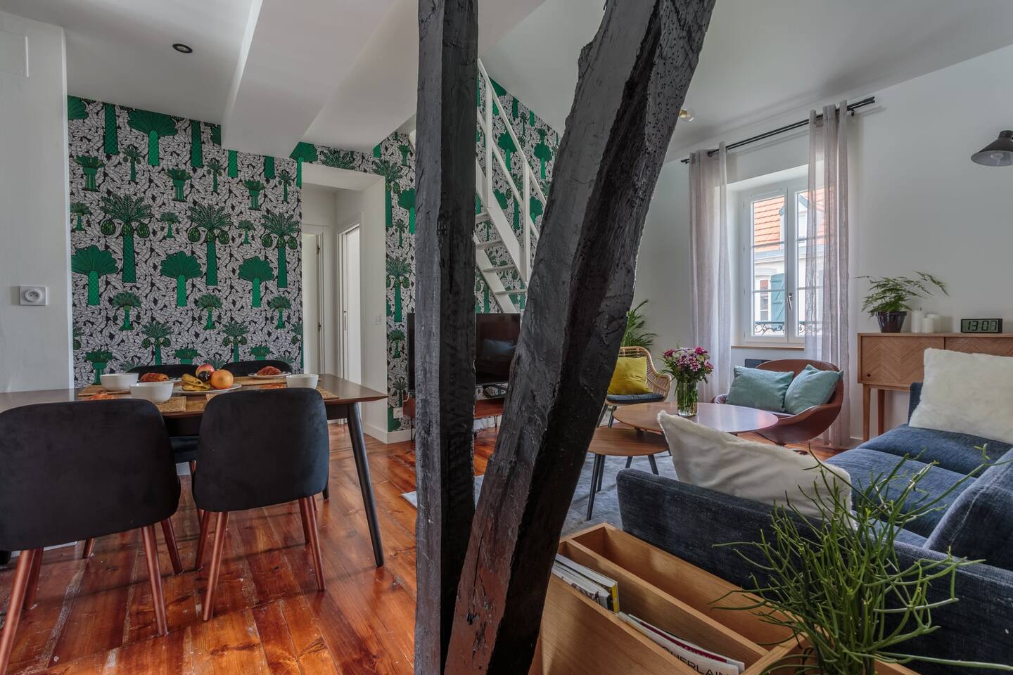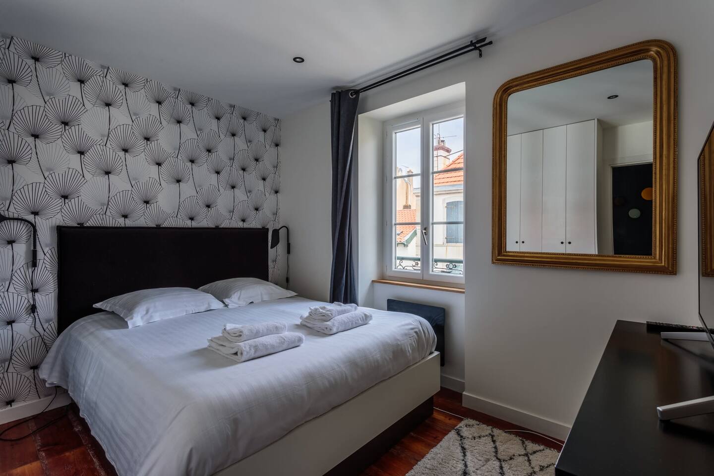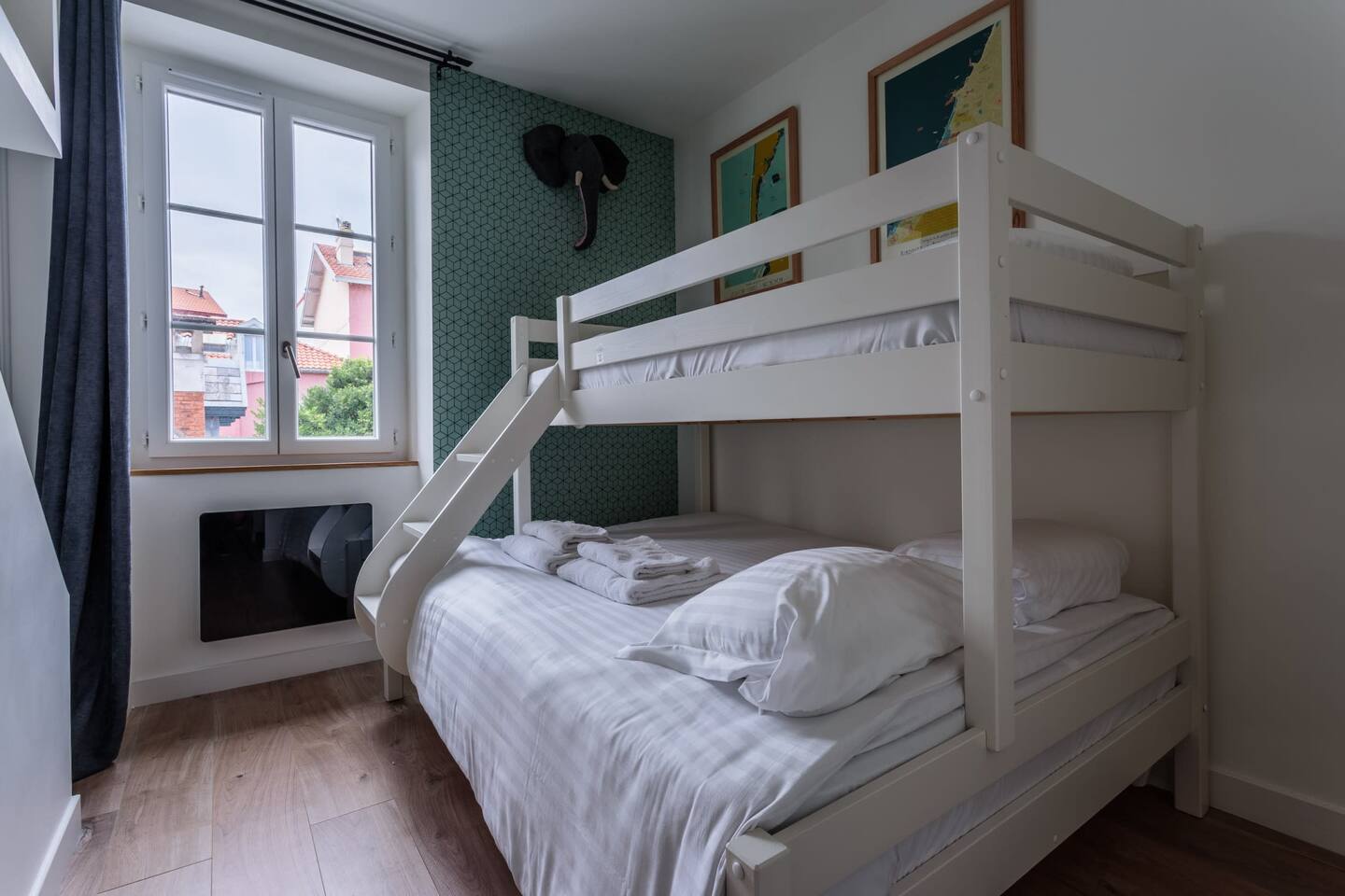 The apartment is on the second floor of a historic house in Biarritz, access is only by stairs. It can accommodate up to 5 people and is composed as follows: - Spacious living room with dining area - Equipped kitchen - Master suite bedding 160 - Private bathroom, walk-in shower - 2nd bedroom, bunk bed, 160 and 90 - 2ᵉ bathroom with bathtub. "All on foot" an indisputable advantage: - 2 minutes from the local producers market of Les Halles open every day from 7 a.m. to 1 p.m. - 5 minutes from Gare du Midi (performance hall) - 5 minutes from the main beach - 10 minutes from the Côte des Basques "Central and calm" peace is our priority, although it is in the center of everything, the apartment will offer you a serene and calm space to meet and rest during your stay. "Travel light" rental includes squared beds, bath towels, mats, glass towels, toilet paper, shower gel and shampoo. Rental of beach sets possible. Cot rental possible.