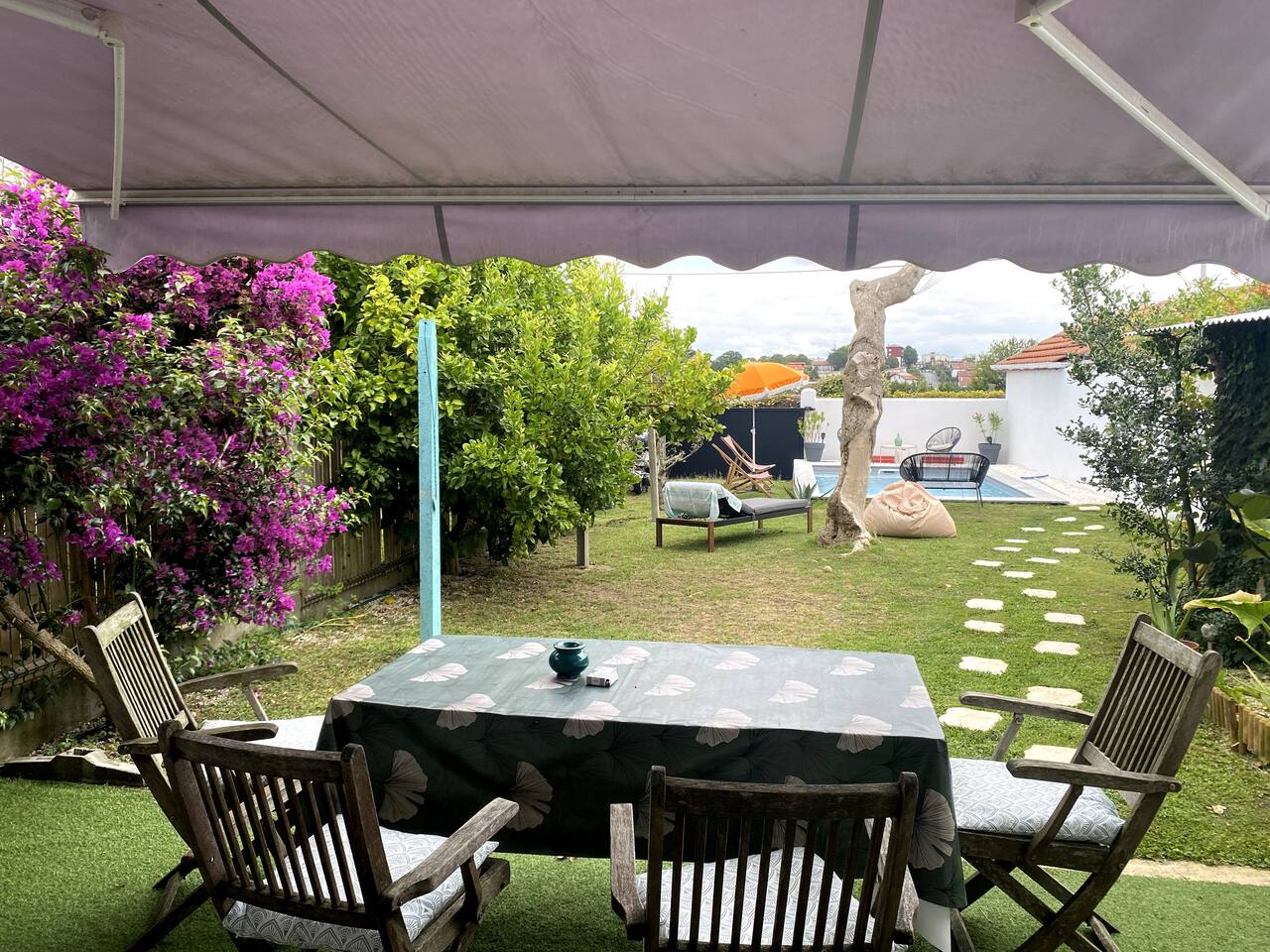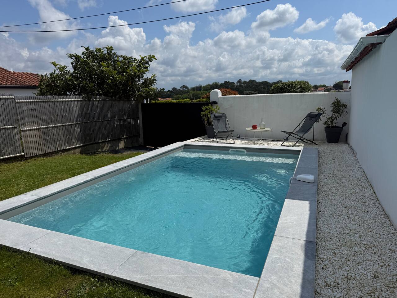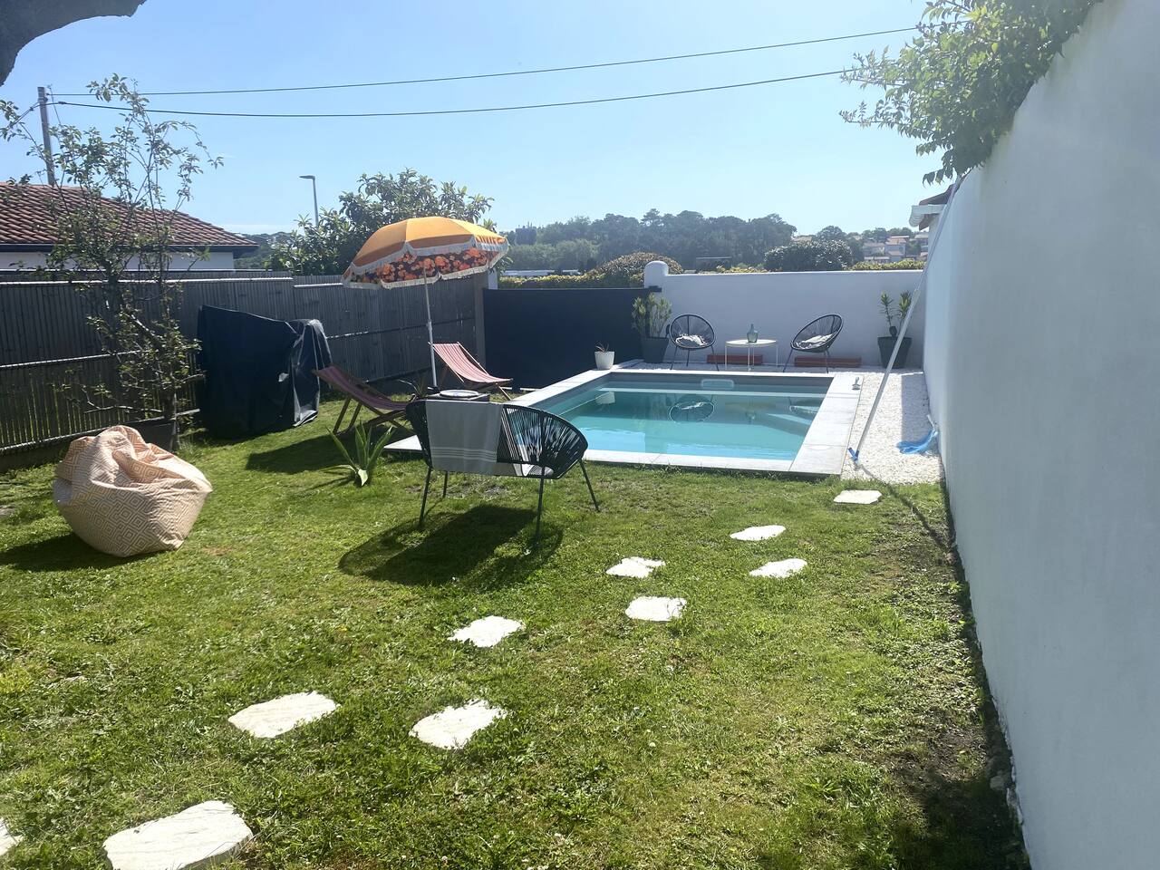 Un espace de vie spacieux et lumineux Dès l’entrée, vous serez séduits par la clarté et l’agencement fluide de la maison. Le rez-de-chaussée s’ouvre sur une cuisine fonctionnelle et bien équipée, parfaite pour préparer vos repas en toute convivialité. Le grand salon, agrémenté d’un coin repas et d’un espace détente avec canapés, donne directement sur une terrasse ensoleillée et un jardin avec piscine. Trois chambres avec salles d’eau privatives La maison peut accueillir jusqu’à six personnes, avec trois chambres réparties sur plusieurs niveaux : • Chambre 1 : située au deuxième étage, avec sa salle d’eau privative. • Chambre 2 : également au deuxième étage, avec une salle d’eau privative. • Chambre 3 : installée sous les combles au troisième étage, offrant un véritable cocon avec sa propre salle d’eau. Un WC indépendant au deuxième étage. Chaque chambre offre un cadre intime et confortable, idéal pour profiter pleinement de votre séjour. Un extérieur conçu pour la détente Profitez d’une terrasse ensoleillée et d’un jardin verdoyant, où la piscine bénéficie d’un ensoleillement optimal tout l’été. Pour votre confort, la maison dispose également de trois places de stationnement : une place à gauche de la piscine et deux autres en enfilade sur le côté droit de la maison. Informations pratiques • Capacité : 6 personnes • Check-in : à partir de 16h • Check-out : avant 10h • Services inclus : lits faits au carré à votre arrivée, serviettes fournies • Règlement : non-fumeurs, animaux non admis Située dans un quartier calme, la Maison Lagun Etxea ( maison des amis en basque) est l’endroit parfait pour se ressourcer tout en profitant de l’ambiance unique de Biarritz. 🌊 Réservez votre séjour dès maintenant et vivez une expérience inoubliable sur la côte basque !