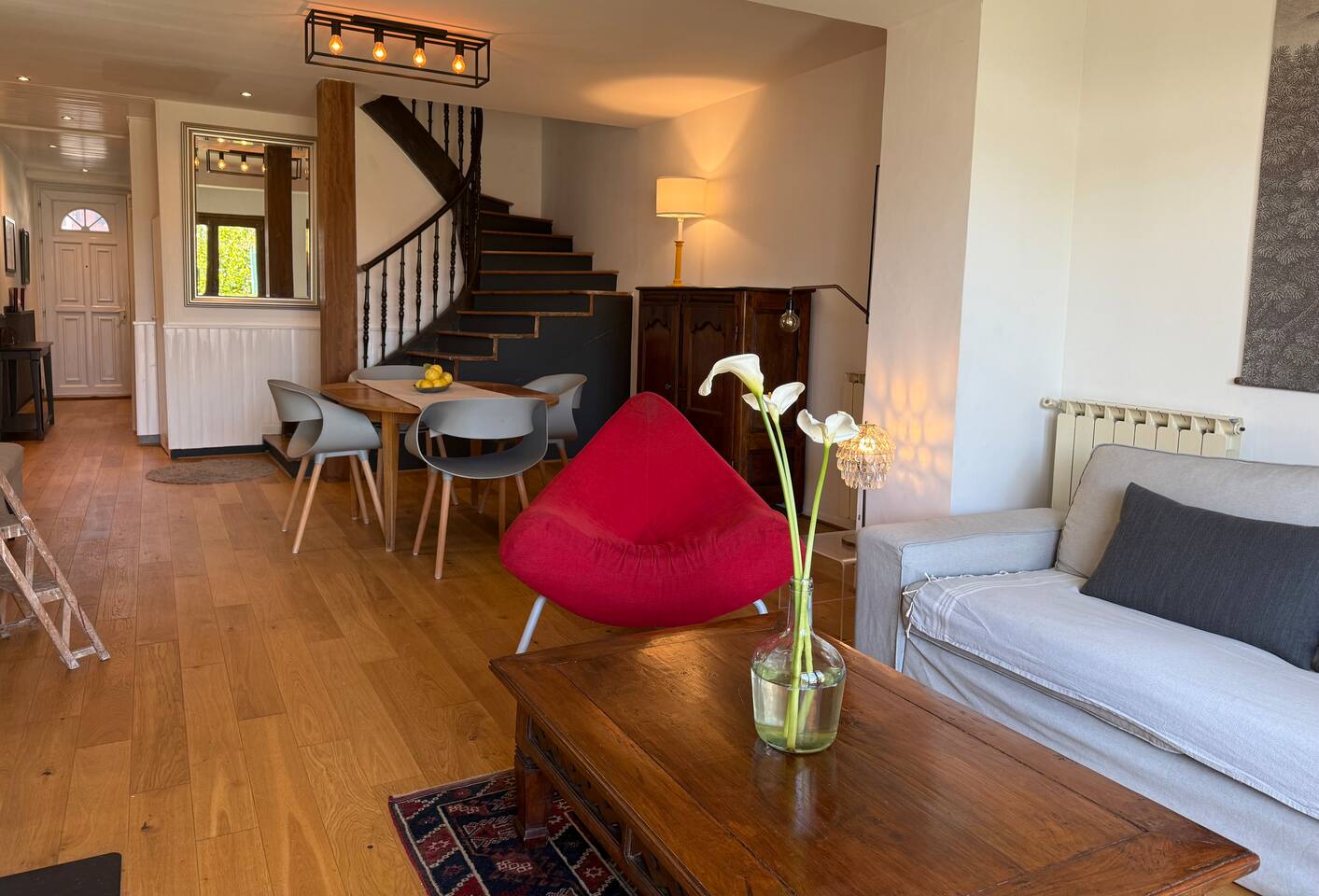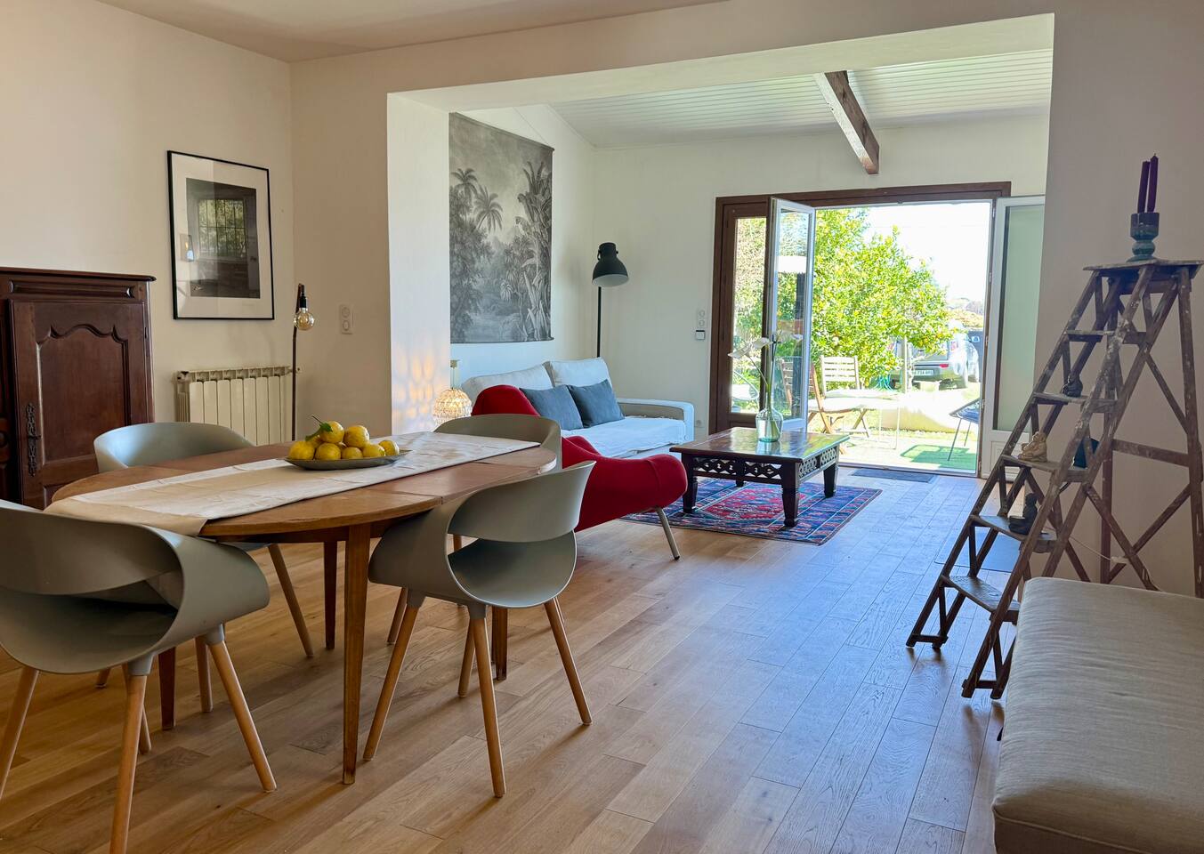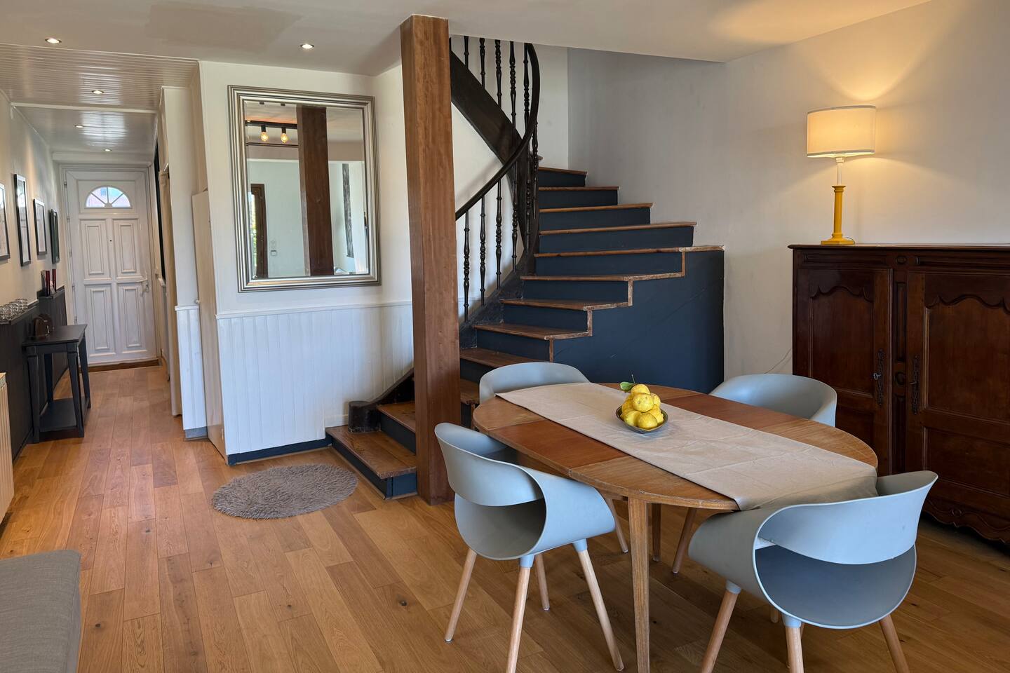 Un espace de vie spacieux et lumineux Dès l’entrée, vous serez séduits par la clarté et l’agencement fluide de la maison. Le rez-de-chaussée s’ouvre sur une cuisine fonctionnelle et bien équipée, parfaite pour préparer vos repas en toute convivialité. Le grand salon, agrémenté d’un coin repas et d’un espace détente avec canapés, donne directement sur une terrasse ensoleillée et un jardin avec piscine. Trois chambres avec salles d’eau privatives La maison peut accueillir jusqu’à six personnes, avec trois chambres réparties sur plusieurs niveaux : • Chambre 1 : située au deuxième étage, avec sa salle d’eau privative. • Chambre 2 : également au deuxième étage, avec une salle d’eau privative. • Chambre 3 : installée sous les combles au troisième étage, offrant un véritable cocon avec sa propre salle d’eau. Un WC indépendant au deuxième étage. Chaque chambre offre un cadre intime et confortable, idéal pour profiter pleinement de votre séjour. Un extérieur conçu pour la détente Profitez d’une terrasse ensoleillée et d’un jardin verdoyant, où la piscine bénéficie d’un ensoleillement optimal tout l’été. Pour votre confort, la maison dispose également de trois places de stationnement : une place à gauche de la piscine et deux autres en enfilade sur le côté droit de la maison. Informations pratiques • Capacité : 6 personnes • Check-in : à partir de 16h • Check-out : avant 10h • Services inclus : lits faits au carré à votre arrivée, serviettes fournies • Règlement : non-fumeurs, animaux non admis Située dans un quartier calme, la Maison Lagun Etxea ( maison des amis en basque) est l’endroit parfait pour se ressourcer tout en profitant de l’ambiance unique de Biarritz. 🌊 Réservez votre séjour dès maintenant et vivez une expérience inoubliable sur la côte basque !