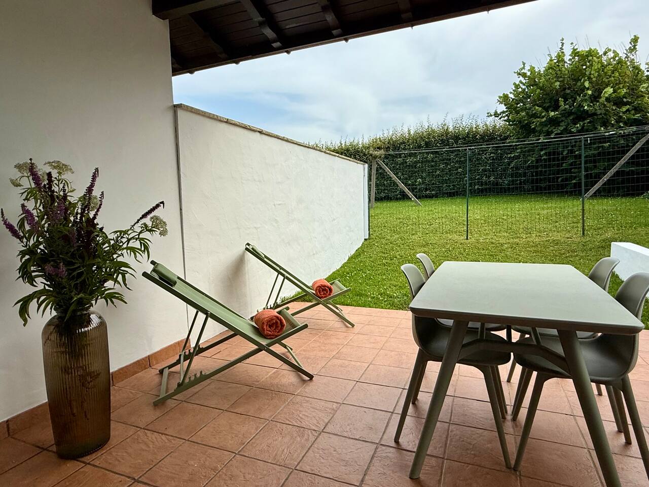 Charmant appartement indépendant pour 2 adultes, situé à seulement 250 m d’une grande plage de sable blanc surveillée. Niché dans un quartier calme et sans vis-à-vis (ni avec les propriétaires ni le voisinage), il offre un cadre cozy, agréable et reposant. Le logement dispose d’un jardin confortable et privatif, équipé de deux chaises longues pour se détendre, ainsi qu’une grande terrasse couverte exposée plein sud. Vous y trouverez également une table pour 4 personnes, idéale pour inviter des amis le temps d’un repas. Parking privé juste devant l’entrée. À seulement 300 m à pied : restaurants, aire de jeux, parc d’attractions pour enfants, skatepark, courts de tennis et terrain de basket. Draps et serviettes fournis. Logement non adapté aux personnes à mobilité réduite. Idéalement situé, à 10 minutes de Biarritz et de Saint-Jean-de-Luz, et à 30 minutes de la frontière espagnole.