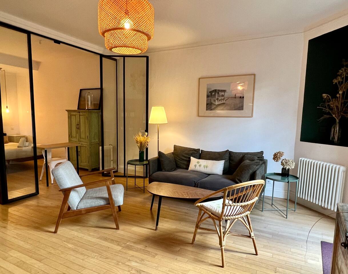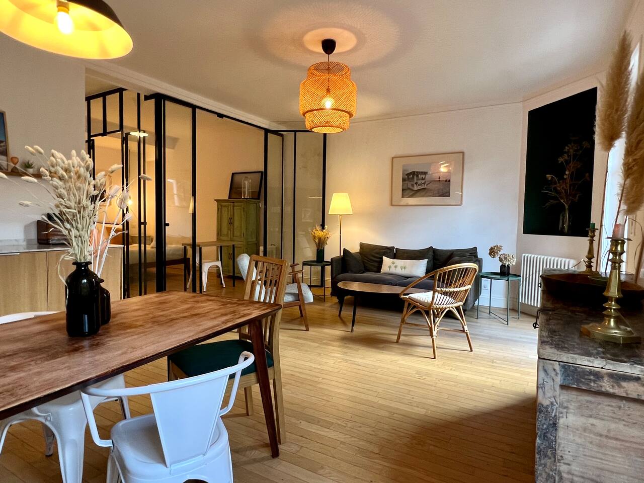 Décoré avec gout, vous séjournerez dans un appartement de caractère unique et apaisant.