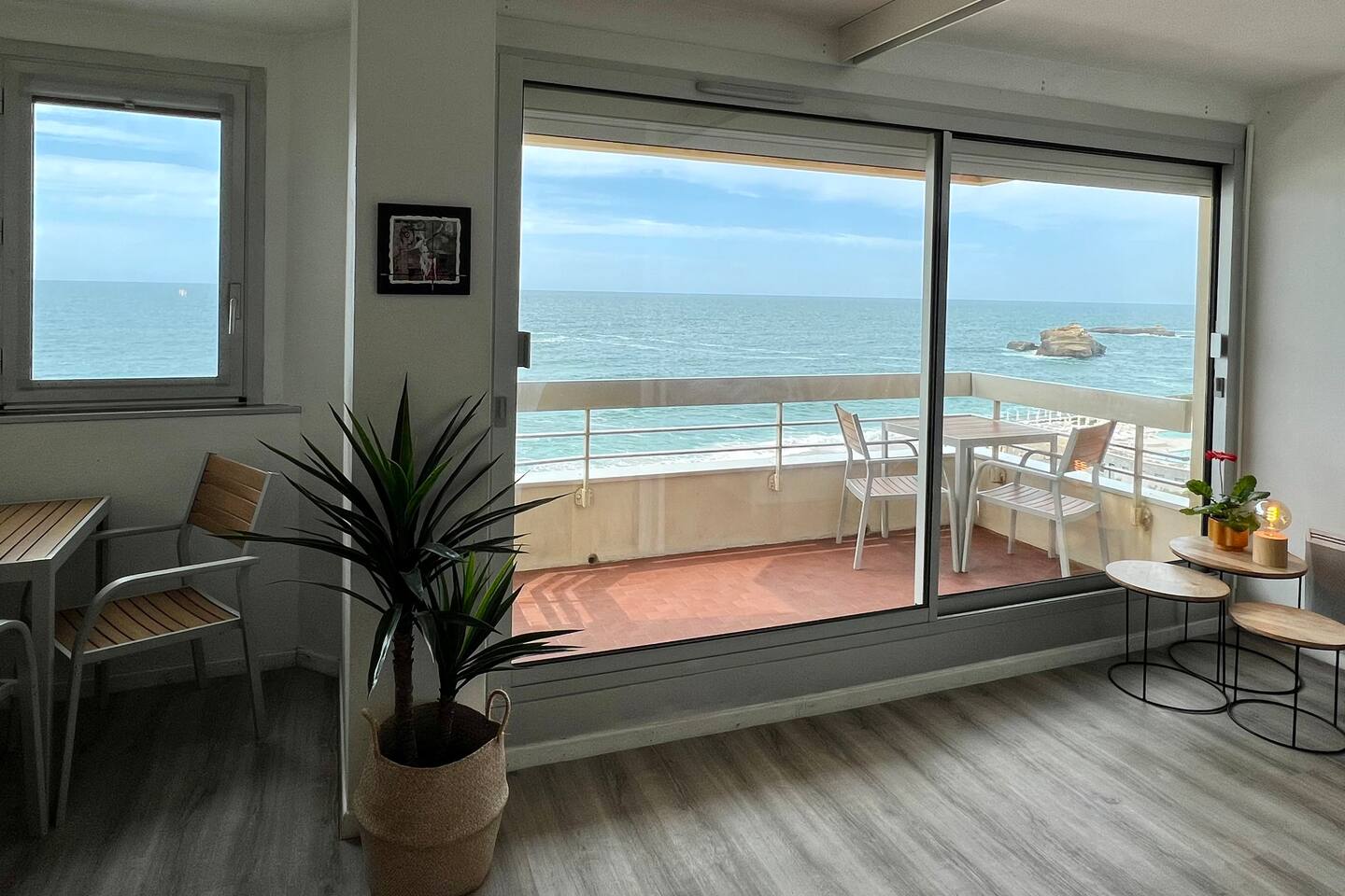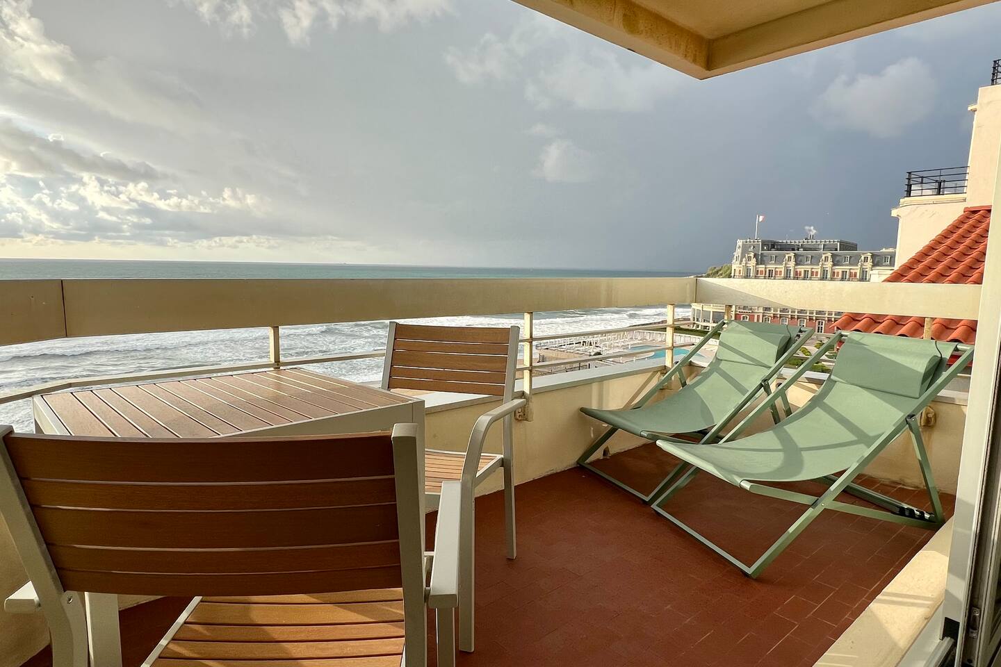 Ce charmant appartement de 40m2 est situé au 4ème étage, accessible par ascenseur et dispose d'un gardien pour votre sécurité. Les grandes fenêtres laissent entrer la lumière naturelle et offrent une vue panoramique sur la mer, créant une ambiance paisible et relaxante. À partir du 1er Juin, vous pourrez également profiter de la piscine privative de l'immeuble, située en front de mer, pour vous détendre et vous rafraîchir tout en admirant la vue sur la mer. Cet appartement T2 dispose d'un salon lumineux équipé d'une table à manger avec 4 chaises, d'une télévision et d'une connexion Wi-Fi gratuite pour votre divertissement et votre confort. La chambre est équipée d'un lit double 140. Veuillez noter que les draps et les serviettes sont fournis. Et lits faits. La cuisine indépendante est équipée de tous les appareils nécessaires pour préparer des repas, notamment un réfrigérateur, un congélateur, un micro-ondes, un lave-linge, des plaques électriques, une bouilloire, un grille-pain et une vaisselle complète. Vous pouvez donc profiter de repas faits maison confortablement installé dans votre appartement. La salle de bain est équipée d'une douche italienne, tandis que les toilettes sont séparées pour plus de commodité. Une terrasse de 6m2 est également disponible, équipée d'une table et de transats pour vous permettre de vous détendre en profitant de la vue imprenable sur l'Ocean, la grande plage et l'hotel du Palais. Enfin, vous n'aurez pas à vous soucier de trouver une place de stationnement pour votre voiture car cet appartement dispose d'un garage privé à votre disposition, merci de confirmer la location gratuite de la place de parking à la réservation. Réservez dès maintenant votre séjour dans l'appartement Ikuspegi situé en front de mer sur la Grand plage pour profiter d'un séjour inoubliable à Biarritz.