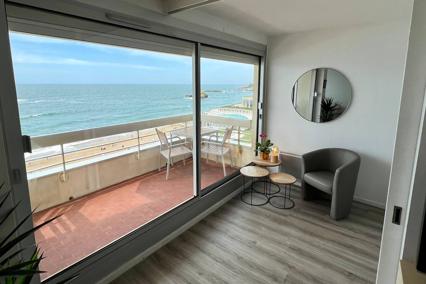 Logement en bail mobilité. L'appartement Ikuspegi est aussi disponible sur le site Destination Côte Basque. Situé en front de mer sur la Grand plage, disposant d'un balcon de 6m2 offrant une vue magnifique sur la mer. Vous apprécierez la commodité de disposer d'un parking privatif dans l'immeuble, ainsi que la possibilité de tout faire à pied, car les commerces et les restaurants se trouvent à proximité et un accès direct à la plage.