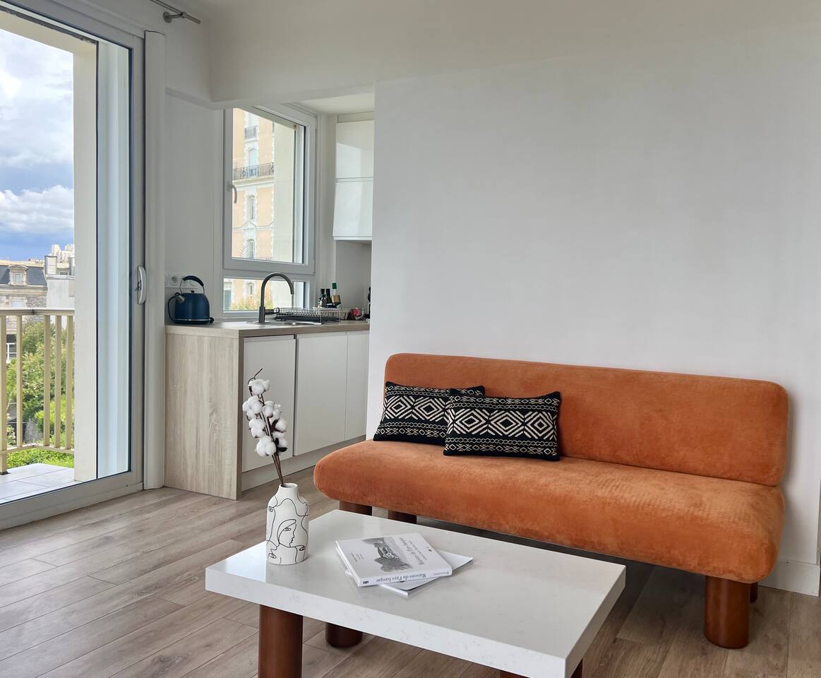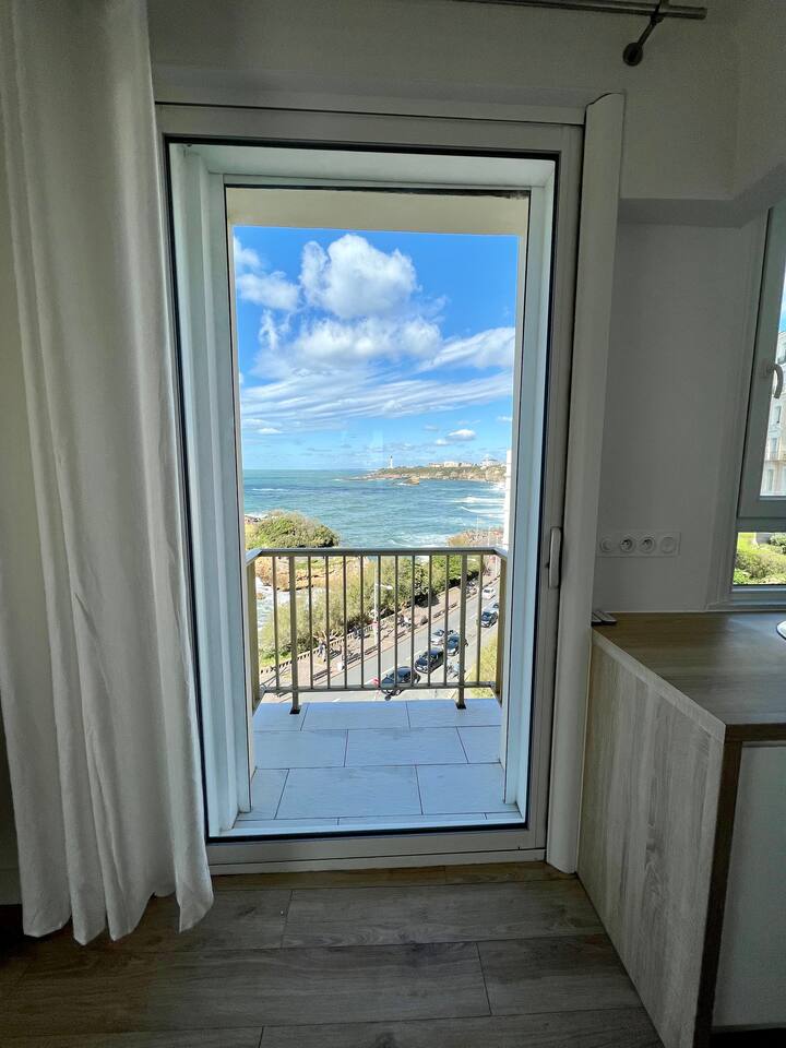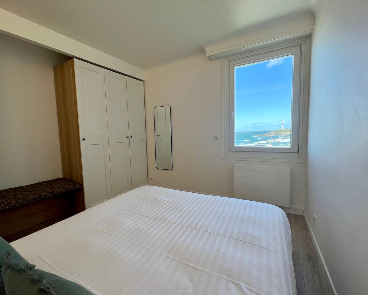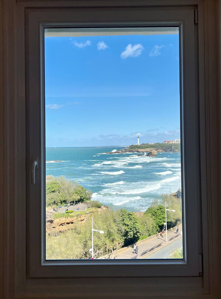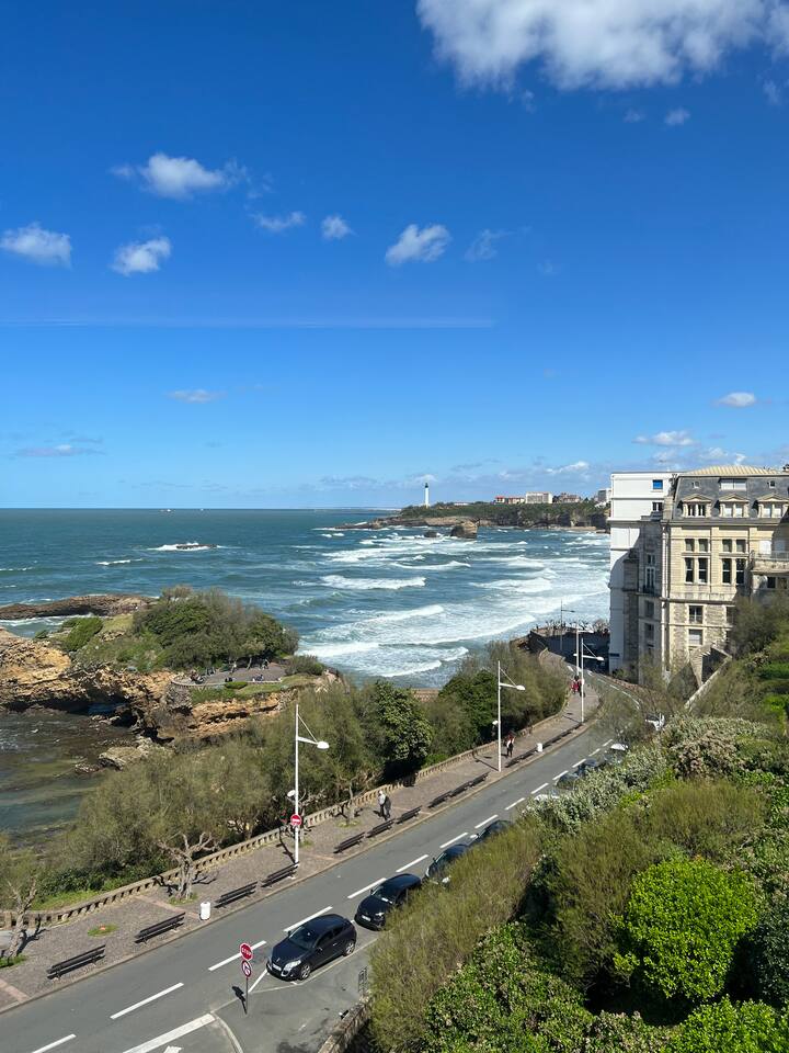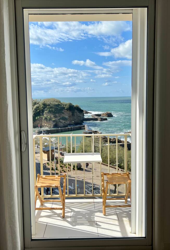 L'appartement Tandem est aussi disponible sur notre site Destination Côte Basque. « Une carte-postale sur Biarritz » L’effect wow est assuré lorsque vous arriverez dans cet appartement, chaque fenêtre confère une vue panoramique sur l’océan, le phare et la place saint Eugénie. « Votre confort, notre priorité » Nous avons aménagé l’espace pour un maximum de confort, vous profiterez : - D’un espace de restauration intérieur. - Un espace salon ouvert sur une cuisine équipée. - Deux balcons équipés, vue au choix. - Une salle de bain avec toilettes. - Une chambre avec literie 160, grand dressing.