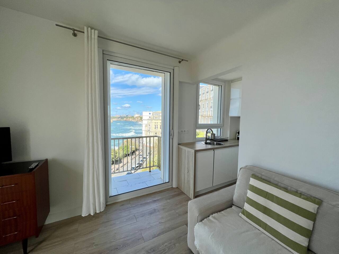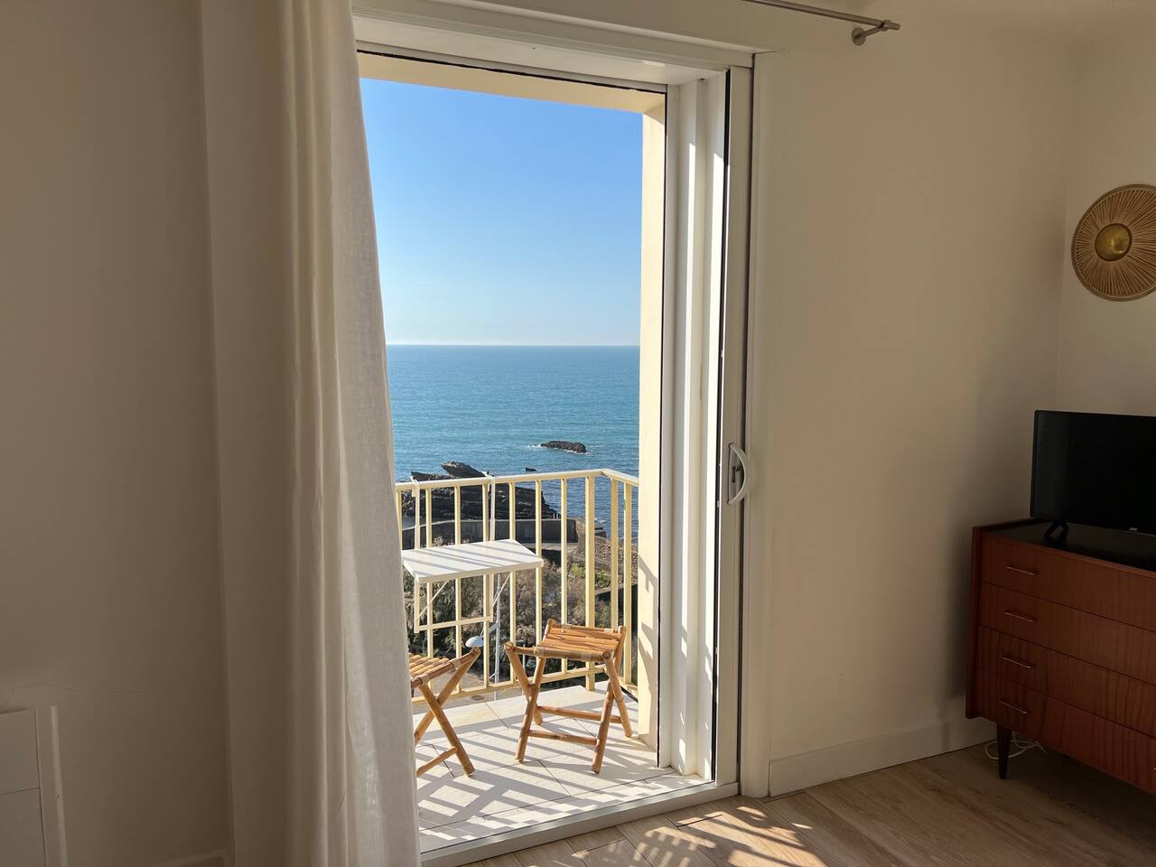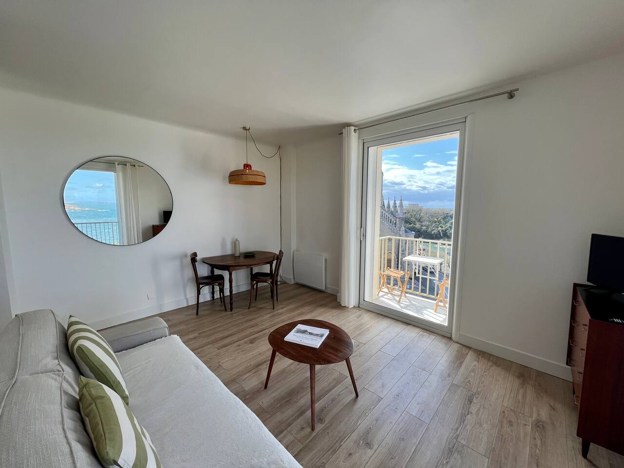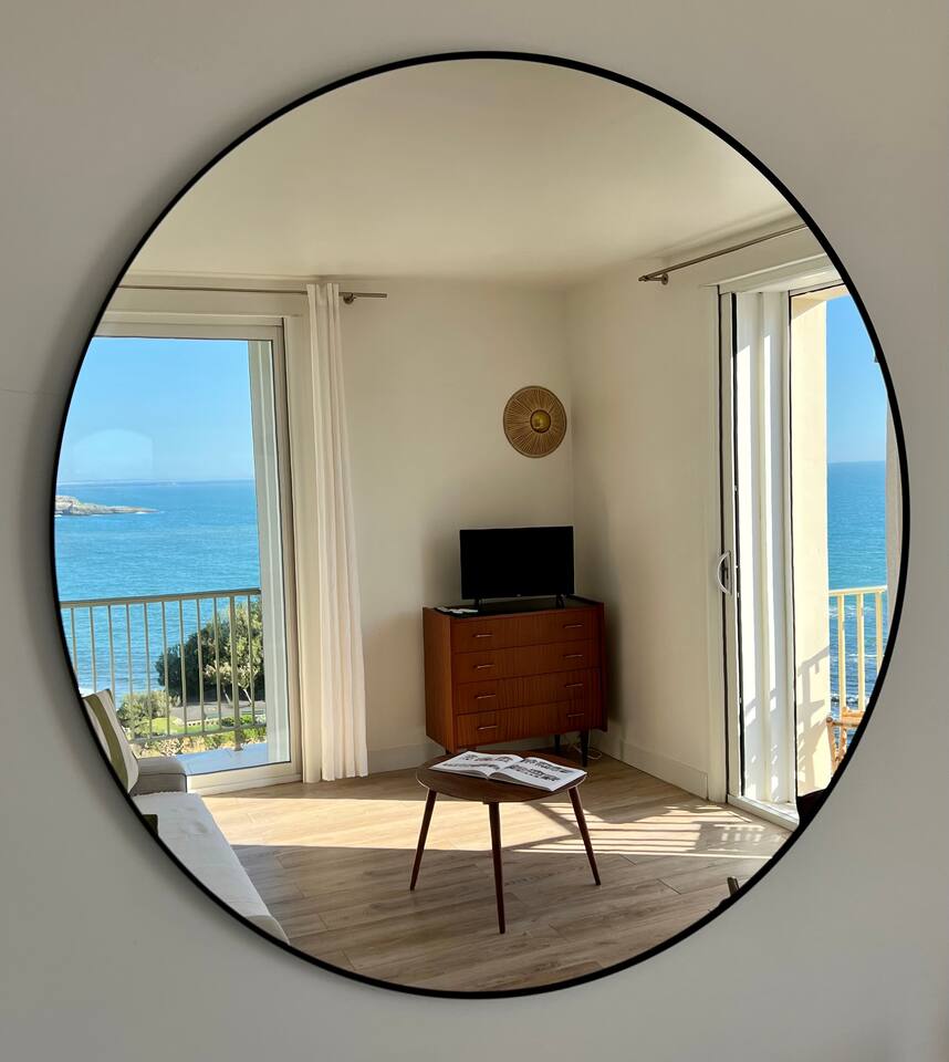 L'appartement Tandem est aussi disponible sur notre site Destination Côte Basque. « Une carte-postale sur Biarritz » L’effect wow est assuré lorsque vous arriverez dans cet appartement, chaque fenêtre confère une vue panoramique sur l’océan, le phare et la place saint Eugénie. « Votre confort, notre priorité » Nous avons aménagé l’espace pour un maximum de confort, vous profiterez : - D’un espace de restauration intérieur. - Un espace salon ouvert sur une cuisine équipée. - Deux balcons équipés, vue au choix. - Une salle de bain avec toilettes. - Une chambre avec literie 160, grand dressing.