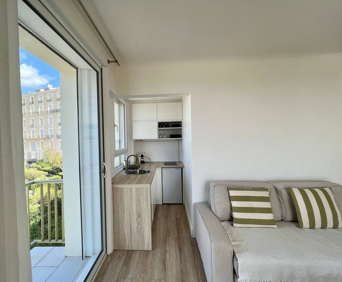 « Tout à pied » un avantage incontestable. La situation de l’appartement vous donne l’avantage de pouvoir vous déplacer exclusivement à pied. Dès la sortie de la résidence vous vous prouverez sur la place Sainte Eugénie, de nombreux restaurants s’y trouvent. A moins de 5 minutes de la grande plage et de la côte des basques, le plus difficile sera de choisir ou aller pour profiter de vos journées. « Central et calme » la paisibilité notre priorité, bien qu’il soit au centre de tout, l’appartement vous offrira un espace serein et calme pour vous retrouver et vous reposer durant votre séjour. « Voyagez léger » la location comprend les lits faits au carré, les serviettes de bain, tapis, essuies verres, papier toilette, gel douche et shampoing. Location de sets de plage possible. Location de lit bébé possible.
