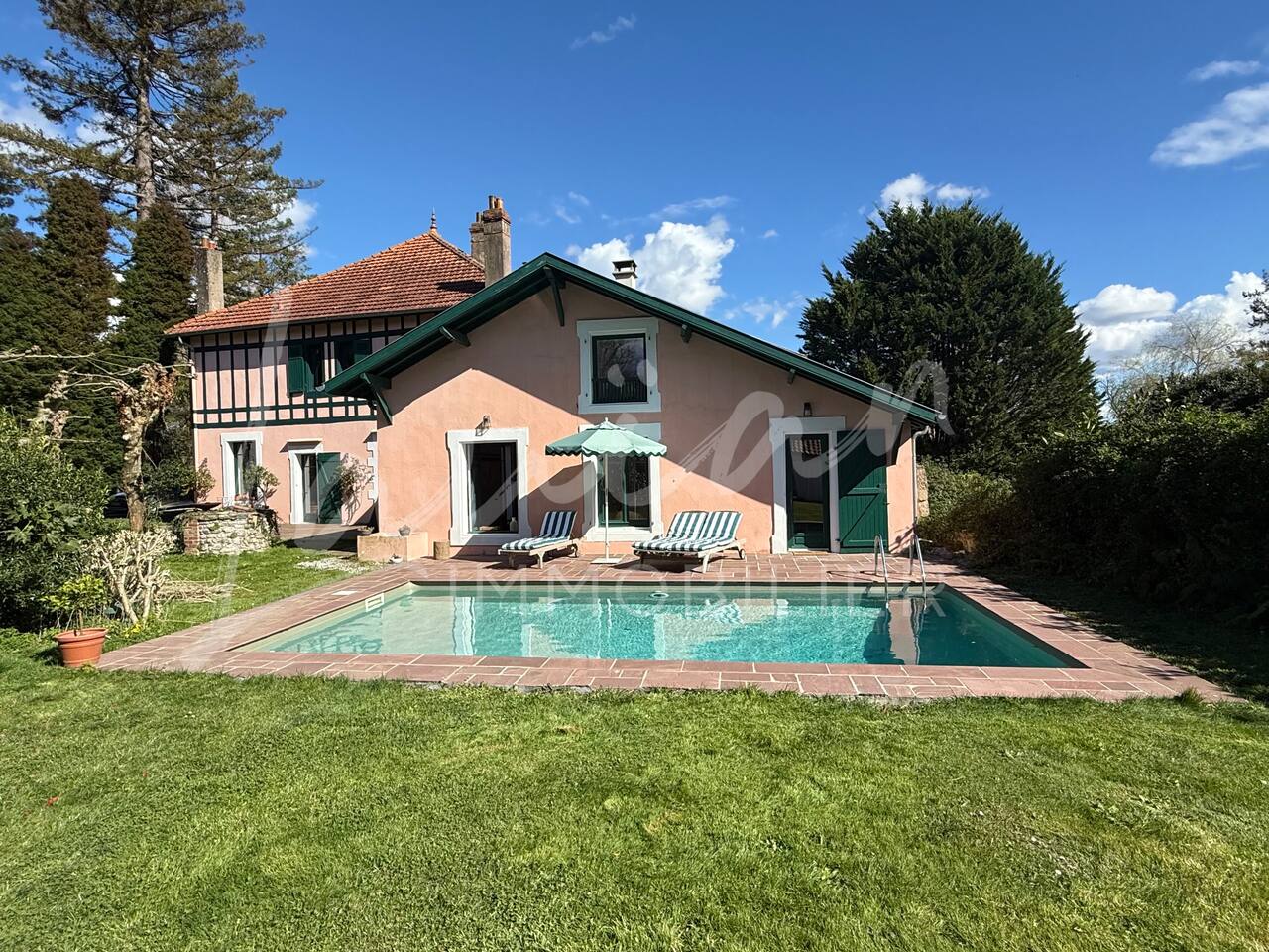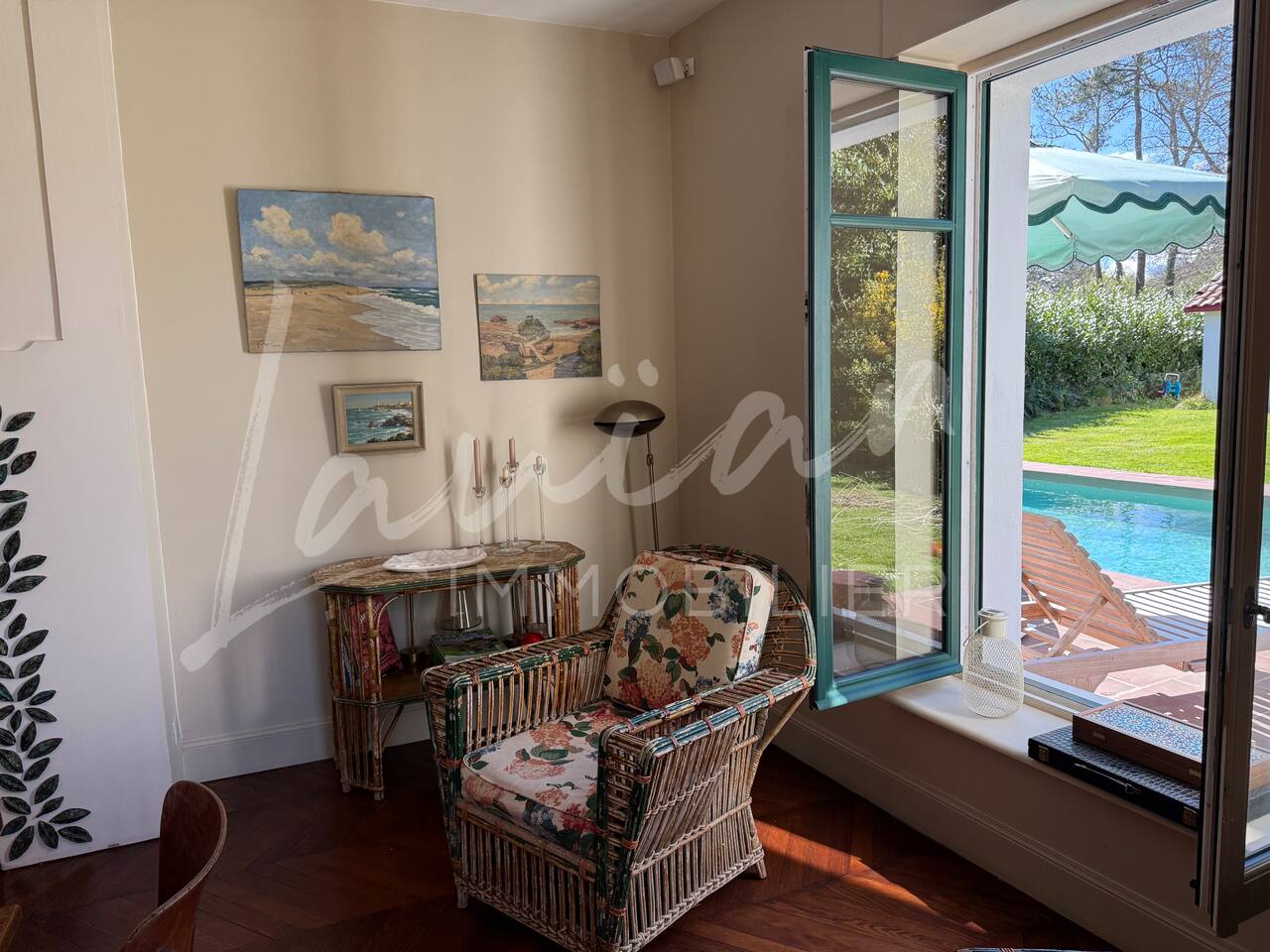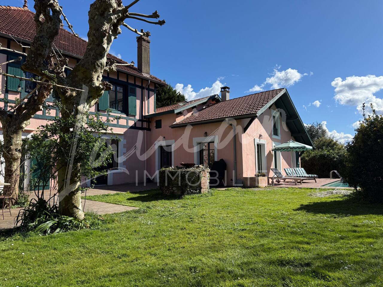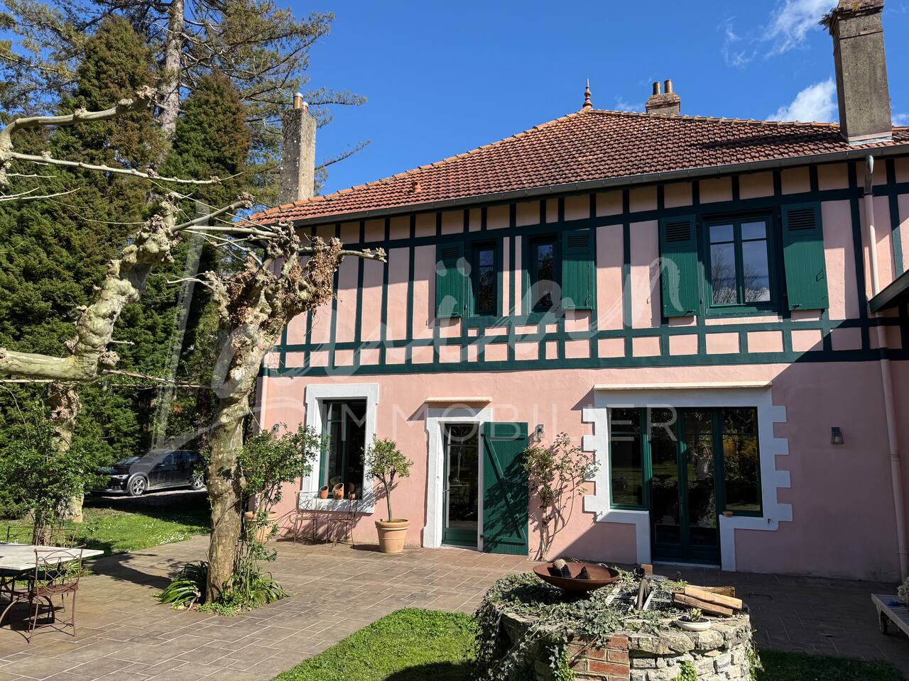 Dès l’arrivée, le parc séduit par son bassin d’agrément d’origine, son potager et ses prairies voisines, créant une atmosphère bucolique rare dans la région. Un intérieur raffiné et spacieux Dès l’entrée, le petit salon d’accueil annonce l’ambiance chaleureuse et conviviale de la maison. Il abrite l’escalier en bois d’époque, permettant d’accéder aux chambres, tout en offrant un espace de rangement idéal pour les vestiaires des invités. Les pièces à vivre se succèdent en douceur : Deux salons en enfilade, ouverts sur la terrasse et le parc, où la lumière naturelle inonde l’espace. Le salon principal, plus formel, précède un salon TV plus intime, parfait pour des soirées détente. Une grande salle à manger, avec un coin bureau, où l’atmosphère élégante est propice aux repas conviviaux. Une imposante cuisine à l’ancienne, véritable pièce maîtresse de la maison. Équipée d’un piano de cuisson professionnel, d’une vaisselle raffinée et d’un électroménager haut de gamme, elle ravira les amateurs de gastronomie. Sa cheminée ancienne et son espace repas en font un lieu de vie privilégié. Des espaces nuit bien distincts La Villa Chocomaitea dispose de 4 chambres, pouvant accueillir jusqu’à 8 personnes, réparties sur deux espaces distincts : L’étage principal - Les chambres principales Chambre 1 : Suite parentale avec lit king size (180 cm), dressing et une grande salle de bain complète (baignoire, douche et WC) Chambre 2 : Lit queen size (160 cm) Chambre 3 : Lit king size (180 cm) modulable en deux lits simples en 90 cm, selon les besoins Une salle d’eau indépendante Un WC séparé Le rez-de-jardin - Un appartement autonome Chambre 4 : Accessible par l’arrière de la cuisine, cette chambre mansardée offre un espace indépendant , une salle d’eau avec WC et un lit queen size (160 cm), idéal pour plus d’intimité. Une grande buanderie avec lave-linge, sèche-linge et table à repasser est disponible au deuxième et dernier étage. Un extérieur enchanteur Le vaste jardin de la propriété offre un cadre exceptionnel pour profiter de l’air libre : Piscine chauffée, entourée de transats pour des moments de détente Grande terrasse aménagée, avec différents espaces pensés pour chaque moment de la journée Coin repas sous la tonnelle, décoré de lampions, parfait pour des dîners sous les étoiles Espace salon en façade, idéal pour les après-midis ensoleillés Grande plancha, pour des repas conviviaux en extérieur Dispositif anti-moustiques efficace, pour des soirées en toute tranquillité Services et confort Présence d’une employée de maison, logée sur place en toute indépendance, assurant 10 heures de ménage par semaine Possibilité d’heures de ménage supplémentaires sur demande à la charge du locataire. Entretien hebdomadaire du jardin et de la piscine Linge de maison fourni Potager à disposition, avec tomates et piments frais Poulailler avec œufs frais à disposition des locataires Les animaux de compagnie ne sont pas acceptés afin de préserver l’équilibre du lieu. Une maison où luxe et nature se rencontrent La Villa Harrietta est une demeure d’exception où chaque détail a été pensé pour offrir une expérience unique. Entre prestige, confort et sérénité, c’est un lieu idéal pour se retrouver et profiter pleinement de Biarritz et de la Côte Basque.
