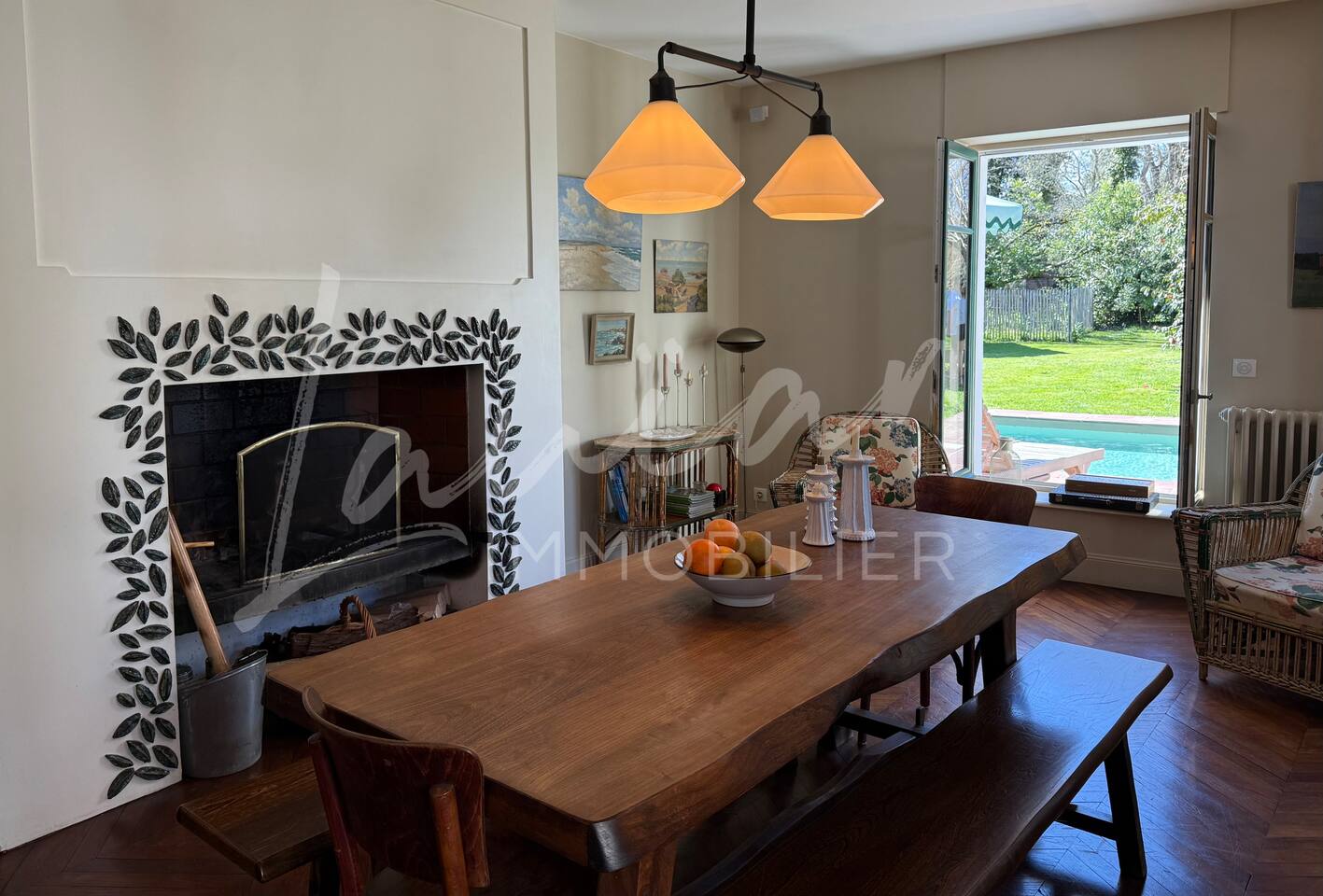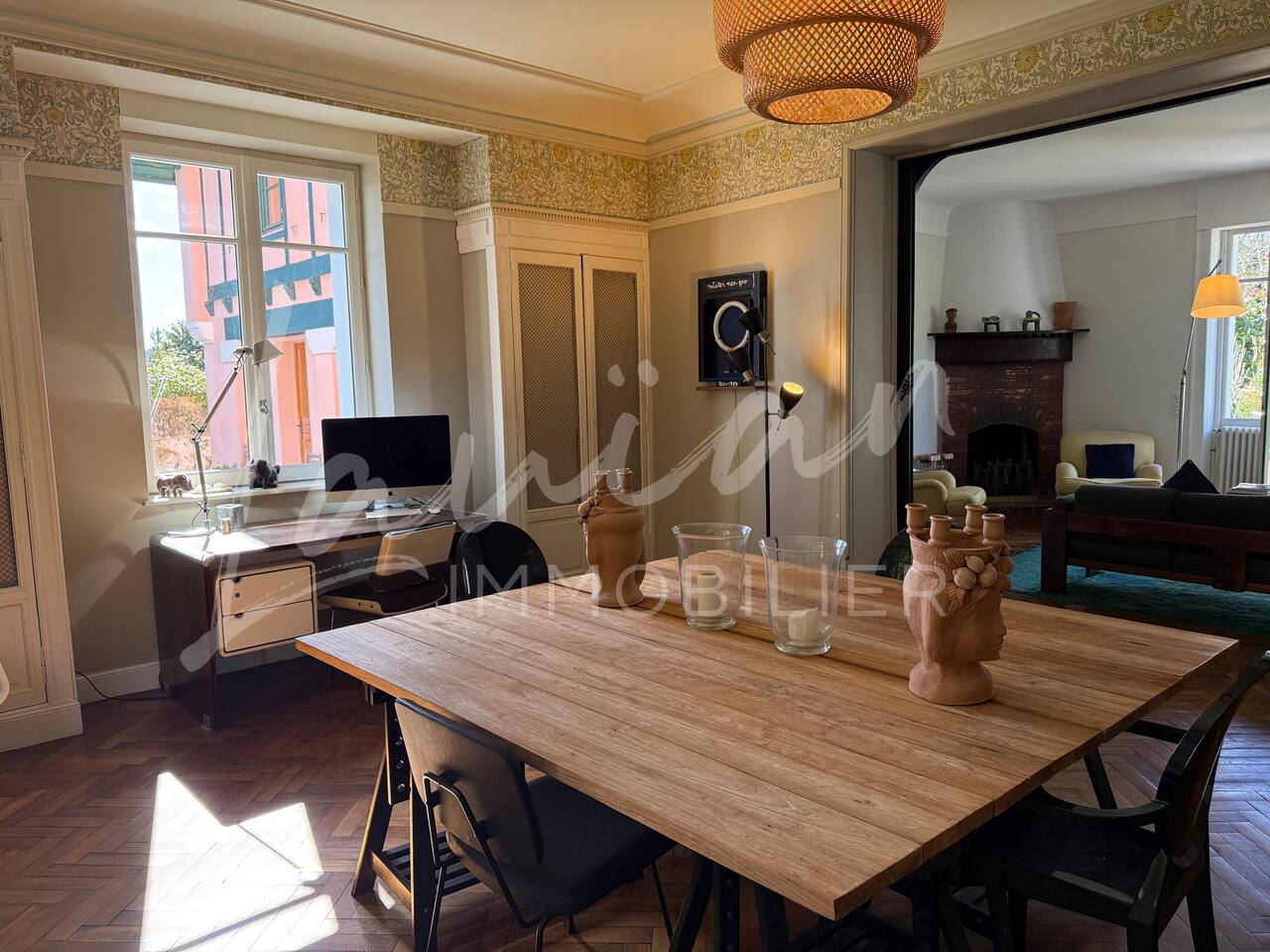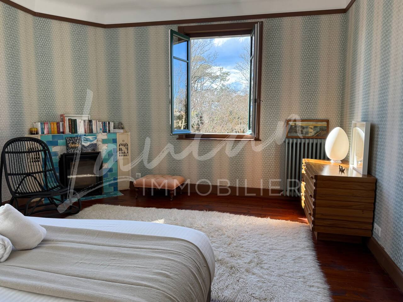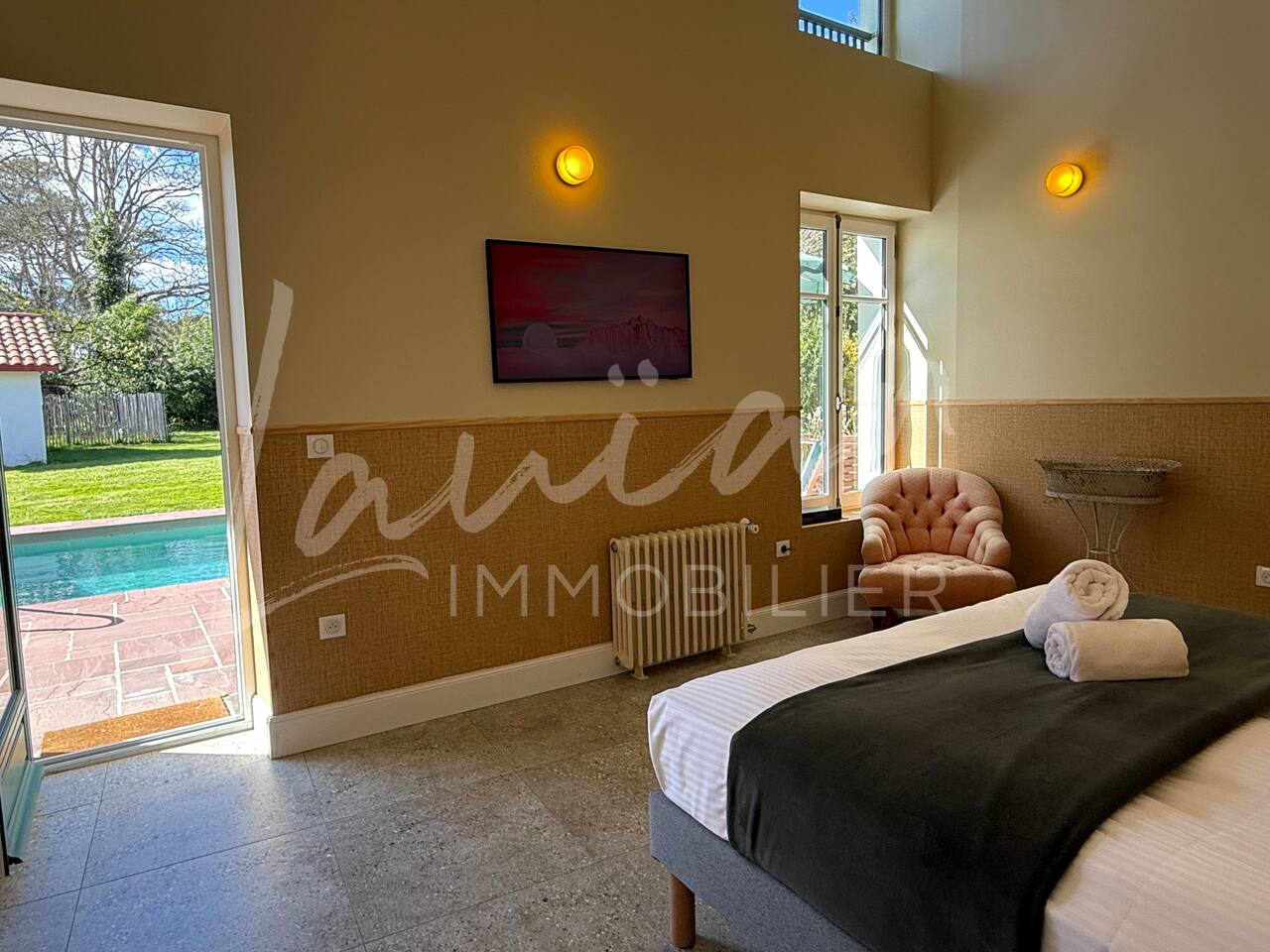 Dès l’arrivée, le parc séduit par son bassin d’agrément d’origine, son potager et ses prairies voisines, créant une atmosphère bucolique rare dans la région. Un intérieur raffiné et spacieux Dès l’entrée, le petit salon d’accueil annonce l’ambiance chaleureuse et conviviale de la maison. Il abrite l’escalier en bois d’époque, permettant d’accéder aux chambres, tout en offrant un espace de rangement idéal pour les vestiaires des invités. Les pièces à vivre se succèdent en douceur : Deux salons en enfilade, ouverts sur la terrasse et le parc, où la lumière naturelle inonde l’espace. Le salon principal, plus formel, précède un salon TV plus intime, parfait pour des soirées détente. Une grande salle à manger, avec un coin bureau, où l’atmosphère élégante est propice aux repas conviviaux. Une imposante cuisine à l’ancienne, véritable pièce maîtresse de la maison. Équipée d’un piano de cuisson professionnel, d’une vaisselle raffinée et d’un électroménager haut de gamme, elle ravira les amateurs de gastronomie. Sa cheminée ancienne et son espace repas en font un lieu de vie privilégié. Des espaces nuit bien distincts La Villa Chocomaitea dispose de 4 chambres, pouvant accueillir jusqu’à 8 personnes, réparties sur deux espaces distincts : L’étage principal - Les chambres principales Chambre 1 : Suite parentale avec lit king size (180 cm), dressing et une grande salle de bain complète (baignoire, douche et WC) Chambre 2 : Lit queen size (160 cm) Chambre 3 : Lit king size (180 cm) modulable en deux lits simples en 90 cm, selon les besoins Une salle d’eau indépendante Un WC séparé Le rez-de-jardin - Un appartement autonome Chambre 4 : Accessible par l’arrière de la cuisine, cette chambre mansardée offre un espace indépendant , une salle d’eau avec WC et un lit queen size (160 cm), idéal pour plus d’intimité. Une grande buanderie avec lave-linge, sèche-linge et table à repasser est disponible au deuxième et dernier étage. Un extérieur enchanteur Le vaste jardin de la propriété offre un cadre exceptionnel pour profiter de l’air libre : Piscine chauffée, entourée de transats pour des moments de détente Grande terrasse aménagée, avec différents espaces pensés pour chaque moment de la journée Coin repas sous la tonnelle, décoré de lampions, parfait pour des dîners sous les étoiles Espace salon en façade, idéal pour les après-midis ensoleillés Grande plancha, pour des repas conviviaux en extérieur Dispositif anti-moustiques efficace, pour des soirées en toute tranquillité Services et confort Présence d’une employée de maison, logée sur place en toute indépendance, assurant 10 heures de ménage par semaine Possibilité d’heures de ménage supplémentaires sur demande à la charge du locataire. Entretien hebdomadaire du jardin et de la piscine Linge de maison fourni Potager à disposition, avec tomates et piments frais Poulailler avec œufs frais à disposition des locataires Les animaux de compagnie ne sont pas acceptés afin de préserver l’équilibre du lieu. Une maison où luxe et nature se rencontrent La Villa Harrietta est une demeure d’exception où chaque détail a été pensé pour offrir une expérience unique. Entre prestige, confort et sérénité, c’est un lieu idéal pour se retrouver et profiter pleinement de Biarritz et de la Côte Basque.