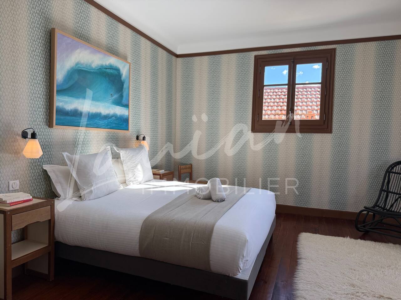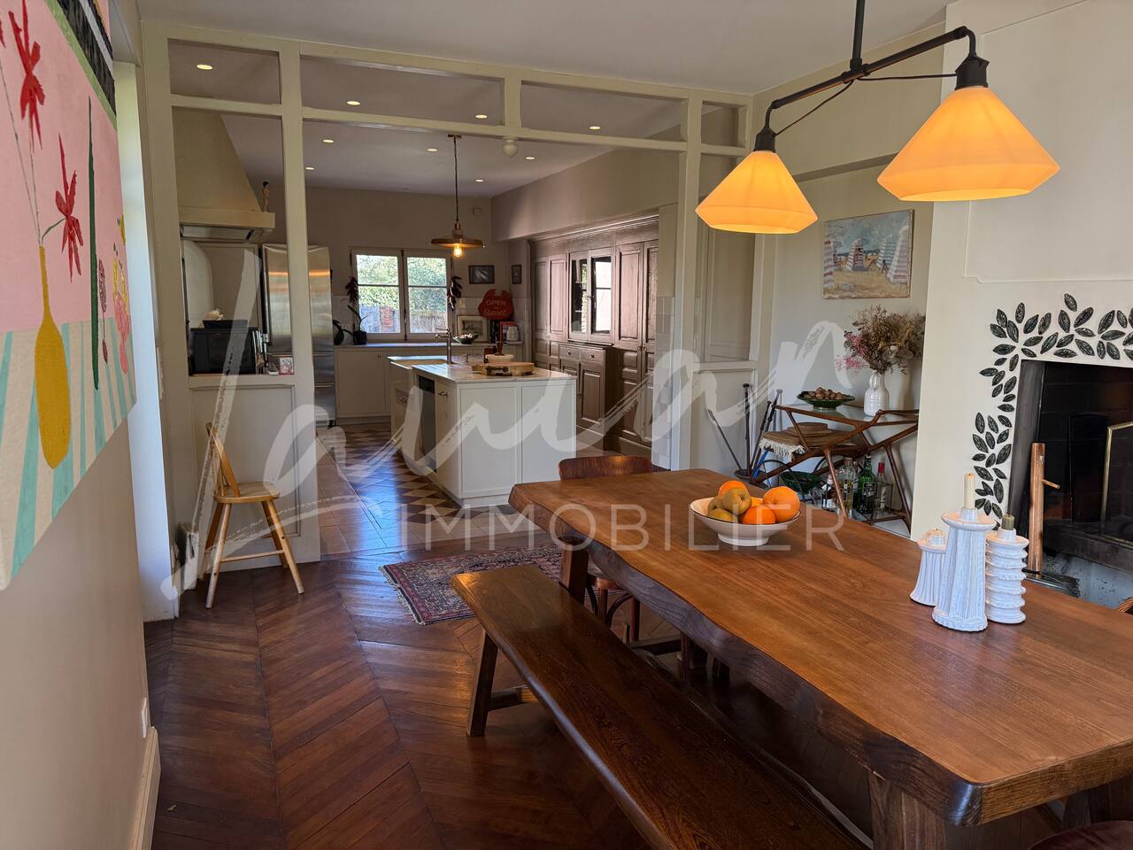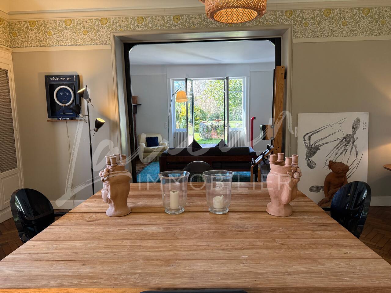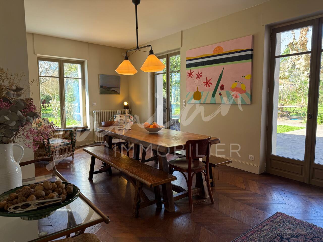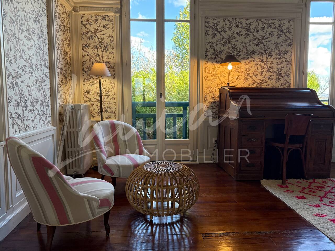 Dès l’arrivée, le parc séduit par son bassin d’agrément d’origine, son potager et ses prairies voisines, créant une atmosphère bucolique rare dans la région. Un intérieur raffiné et spacieux Dès l’entrée, le petit salon d’accueil annonce l’ambiance chaleureuse et conviviale de la maison. Il abrite l’escalier en bois d’époque, permettant d’accéder aux chambres, tout en offrant un espace de rangement idéal pour les vestiaires des invités. Les pièces à vivre se succèdent en douceur : Deux salons en enfilade, ouverts sur la terrasse et le parc, où la lumière naturelle inonde l’espace. Le salon principal, plus formel, précède un salon TV plus intime, parfait pour des soirées détente. Une grande salle à manger, avec un coin bureau, où l’atmosphère élégante est propice aux repas conviviaux. Une imposante cuisine à l’ancienne, véritable pièce maîtresse de la maison. Équipée d’un piano de cuisson professionnel, d’une vaisselle raffinée et d’un électroménager haut de gamme, elle ravira les amateurs de gastronomie. Sa cheminée ancienne et son espace repas en font un lieu de vie privilégié. Des espaces nuit bien distincts La Villa Chocomaitea dispose de 4 chambres, pouvant accueillir jusqu’à 8 personnes, réparties sur deux espaces distincts : L’étage principal - Les chambres principales Chambre 1 : Suite parentale avec lit king size (180 cm), dressing et une grande salle de bain complète (baignoire, douche et WC) Chambre 2 : Lit queen size (160 cm) Chambre 3 : Lit king size (180 cm) modulable en deux lits simples en 90 cm, selon les besoins Une salle d’eau indépendante Un WC séparé Le rez-de-jardin - Un appartement autonome Chambre 4 : Accessible par l’arrière de la cuisine, cette chambre mansardée offre un espace indépendant , une salle d’eau avec WC et un lit queen size (160 cm), idéal pour plus d’intimité. Une grande buanderie avec lave-linge, sèche-linge et table à repasser est disponible au deuxième et dernier étage. Un extérieur enchanteur Le vaste jardin de la propriété offre un cadre exceptionnel pour profiter de l’air libre : Piscine chauffée, entourée de transats pour des moments de détente Grande terrasse aménagée, avec différents espaces pensés pour chaque moment de la journée Coin repas sous la tonnelle, décoré de lampions, parfait pour des dîners sous les étoiles Espace salon en façade, idéal pour les après-midis ensoleillés Grande plancha, pour des repas conviviaux en extérieur Dispositif anti-moustiques efficace, pour des soirées en toute tranquillité Services et confort Présence d’une employée de maison, logée sur place en toute indépendance, assurant 10 heures de ménage par semaine Possibilité d’heures de ménage supplémentaires sur demande à la charge du locataire. Entretien hebdomadaire du jardin et de la piscine Linge de maison fourni Potager à disposition, avec tomates et piments frais Poulailler avec œufs frais à disposition des locataires Les animaux de compagnie ne sont pas acceptés afin de préserver l’équilibre du lieu. Une maison où luxe et nature se rencontrent La Villa Harrietta est une demeure d’exception où chaque détail a été pensé pour offrir une expérience unique. Entre prestige, confort et sérénité, c’est un lieu idéal pour se retrouver et profiter pleinement de Biarritz et de la Côte Basque.