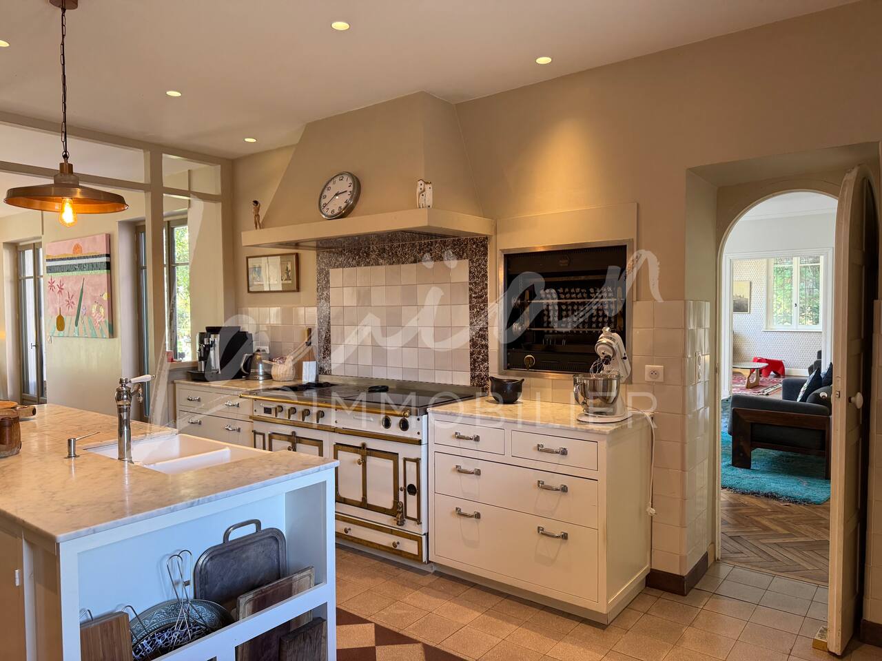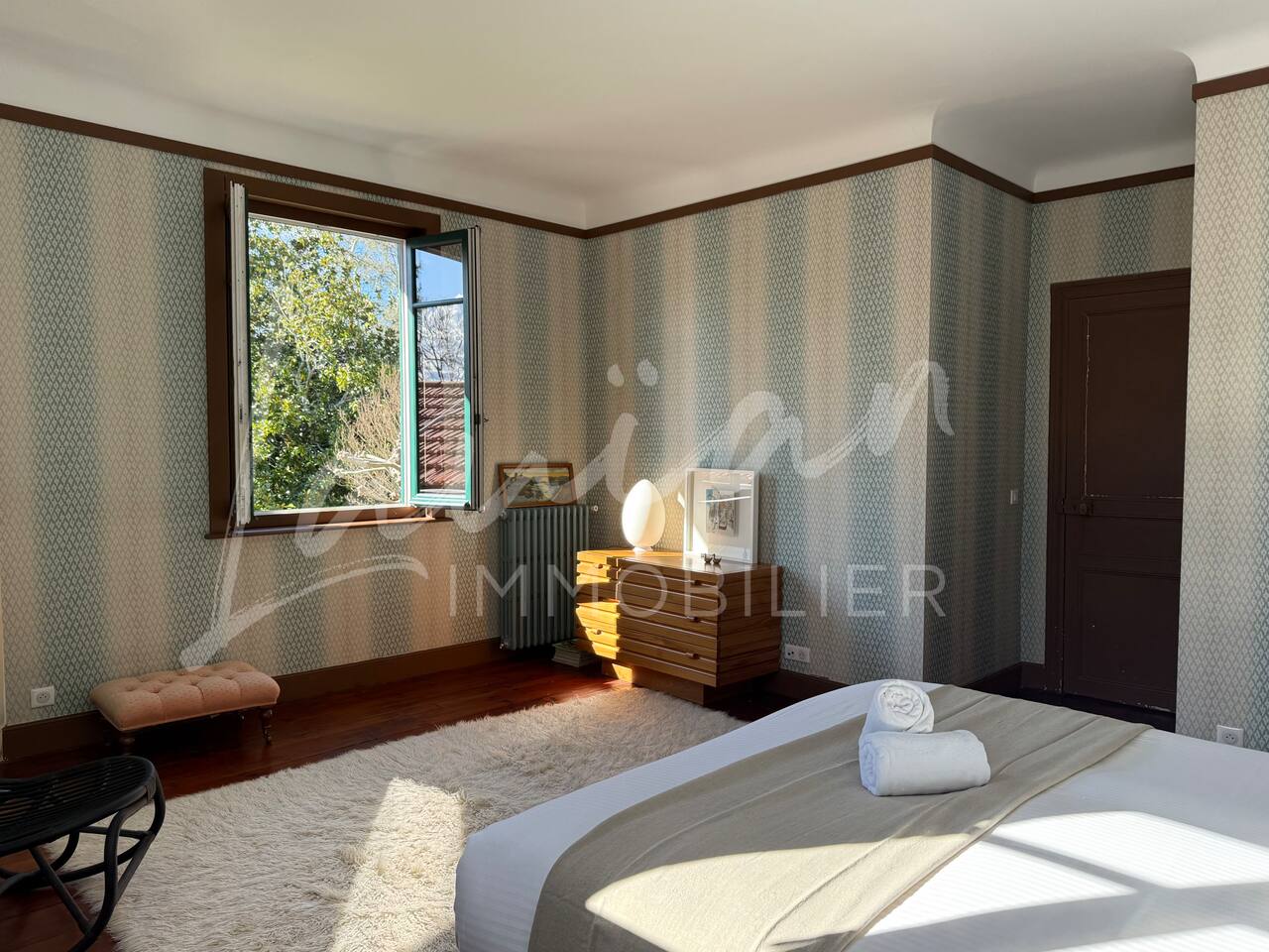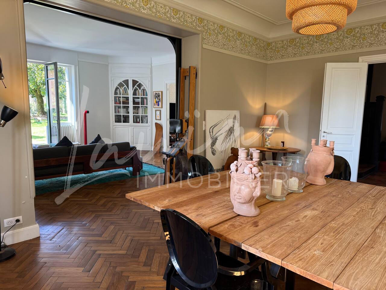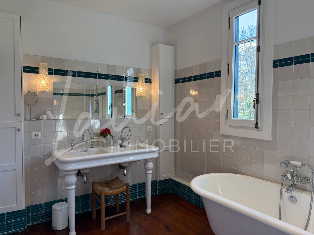 Dès l’arrivée, le parc séduit par son bassin d’agrément d’origine, son potager et ses prairies voisines, créant une atmosphère bucolique rare dans la région. Un intérieur raffiné et spacieux Dès l’entrée, le petit salon d’accueil annonce l’ambiance chaleureuse et conviviale de la maison. Il abrite l’escalier en bois d’époque, permettant d’accéder aux chambres, tout en offrant un espace de rangement idéal pour les vestiaires des invités. Les pièces à vivre se succèdent en douceur : Deux salons en enfilade, ouverts sur la terrasse et le parc, où la lumière naturelle inonde l’espace. Le salon principal, plus formel, précède un salon TV plus intime, parfait pour des soirées détente. Une grande salle à manger, avec un coin bureau, où l’atmosphère élégante est propice aux repas conviviaux. Une imposante cuisine à l’ancienne, véritable pièce maîtresse de la maison. Équipée d’un piano de cuisson professionnel, d’une vaisselle raffinée et d’un électroménager haut de gamme, elle ravira les amateurs de gastronomie. Sa cheminée ancienne et son espace repas en font un lieu de vie privilégié. Des espaces nuit bien distincts La Villa Chocomaitea dispose de 4 chambres, pouvant accueillir jusqu’à 8 personnes, réparties sur deux espaces distincts : L’étage principal - Les chambres principales Chambre 1 : Suite parentale avec lit king size (180 cm), dressing et une grande salle de bain complète (baignoire, douche et WC) Chambre 2 : Lit queen size (160 cm) Chambre 3 : Lit king size (180 cm) modulable en deux lits simples en 90 cm, selon les besoins Une salle d’eau indépendante Un WC séparé Le rez-de-jardin - Un appartement autonome Chambre 4 : Accessible par l’arrière de la cuisine, cette chambre mansardée offre un espace indépendant , une salle d’eau avec WC et un lit queen size (160 cm), idéal pour plus d’intimité. Une grande buanderie avec lave-linge, sèche-linge et table à repasser est disponible au deuxième et dernier étage. Un extérieur enchanteur Le vaste jardin de la propriété offre un cadre exceptionnel pour profiter de l’air libre : Piscine chauffée, entourée de transats pour des moments de détente Grande terrasse aménagée, avec différents espaces pensés pour chaque moment de la journée Coin repas sous la tonnelle, décoré de lampions, parfait pour des dîners sous les étoiles Espace salon en façade, idéal pour les après-midis ensoleillés Grande plancha, pour des repas conviviaux en extérieur Dispositif anti-moustiques efficace, pour des soirées en toute tranquillité Services et confort Présence d’une employée de maison, logée sur place en toute indépendance, assurant 10 heures de ménage par semaine Possibilité d’heures de ménage supplémentaires sur demande à la charge du locataire. Entretien hebdomadaire du jardin et de la piscine Linge de maison fourni Potager à disposition, avec tomates et piments frais Poulailler avec œufs frais à disposition des locataires Les animaux de compagnie ne sont pas acceptés afin de préserver l’équilibre du lieu. Une maison où luxe et nature se rencontrent La Villa Harrietta est une demeure d’exception où chaque détail a été pensé pour offrir une expérience unique. Entre prestige, confort et sérénité, c’est un lieu idéal pour se retrouver et profiter pleinement de Biarritz et de la Côte Basque.