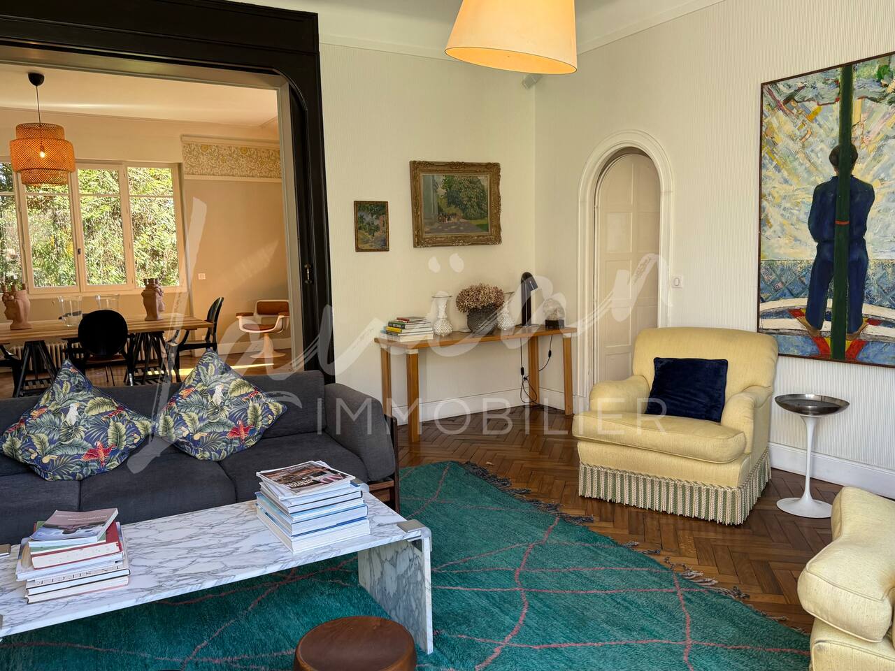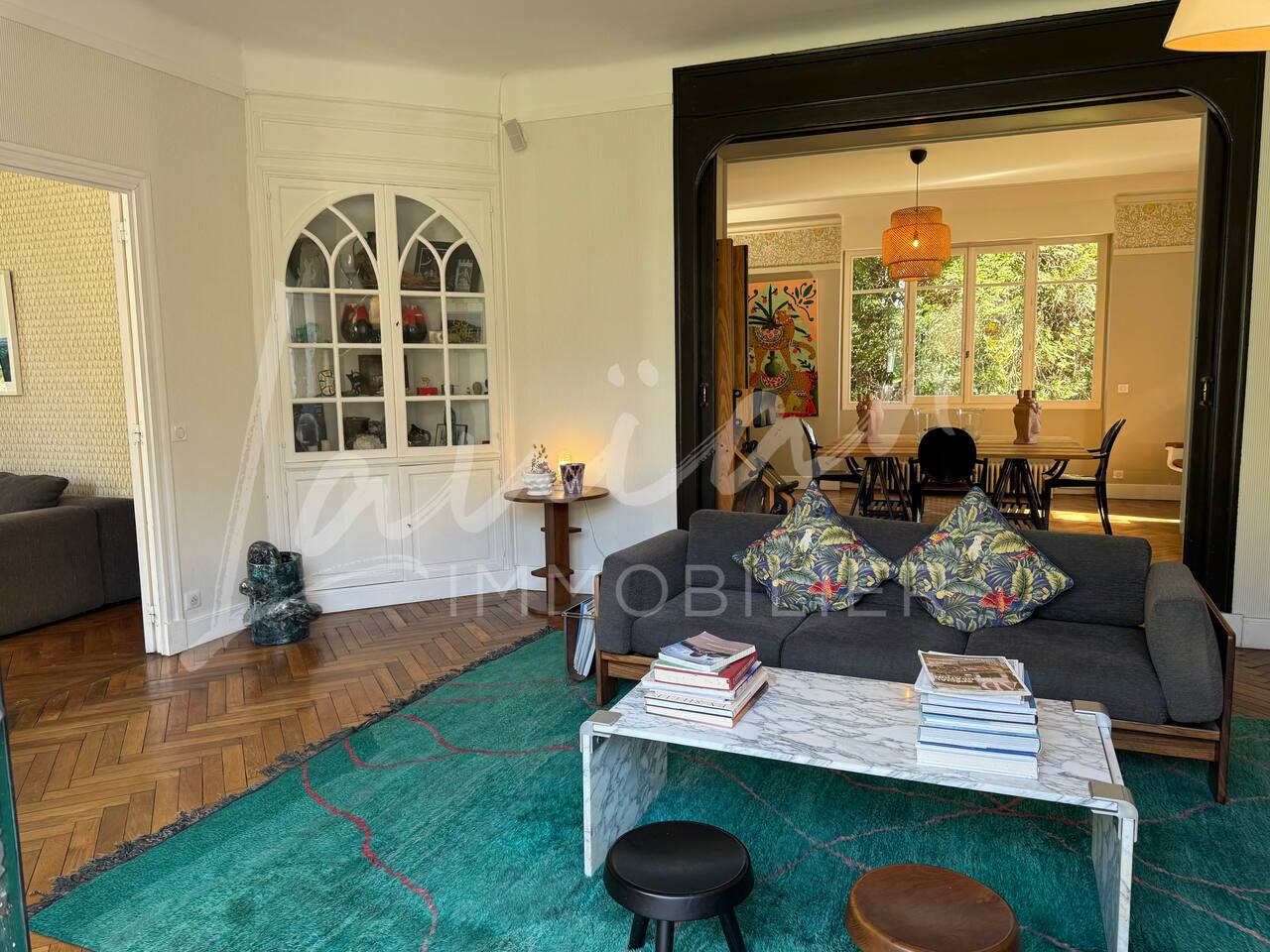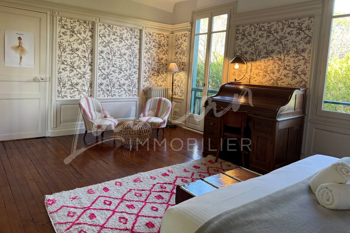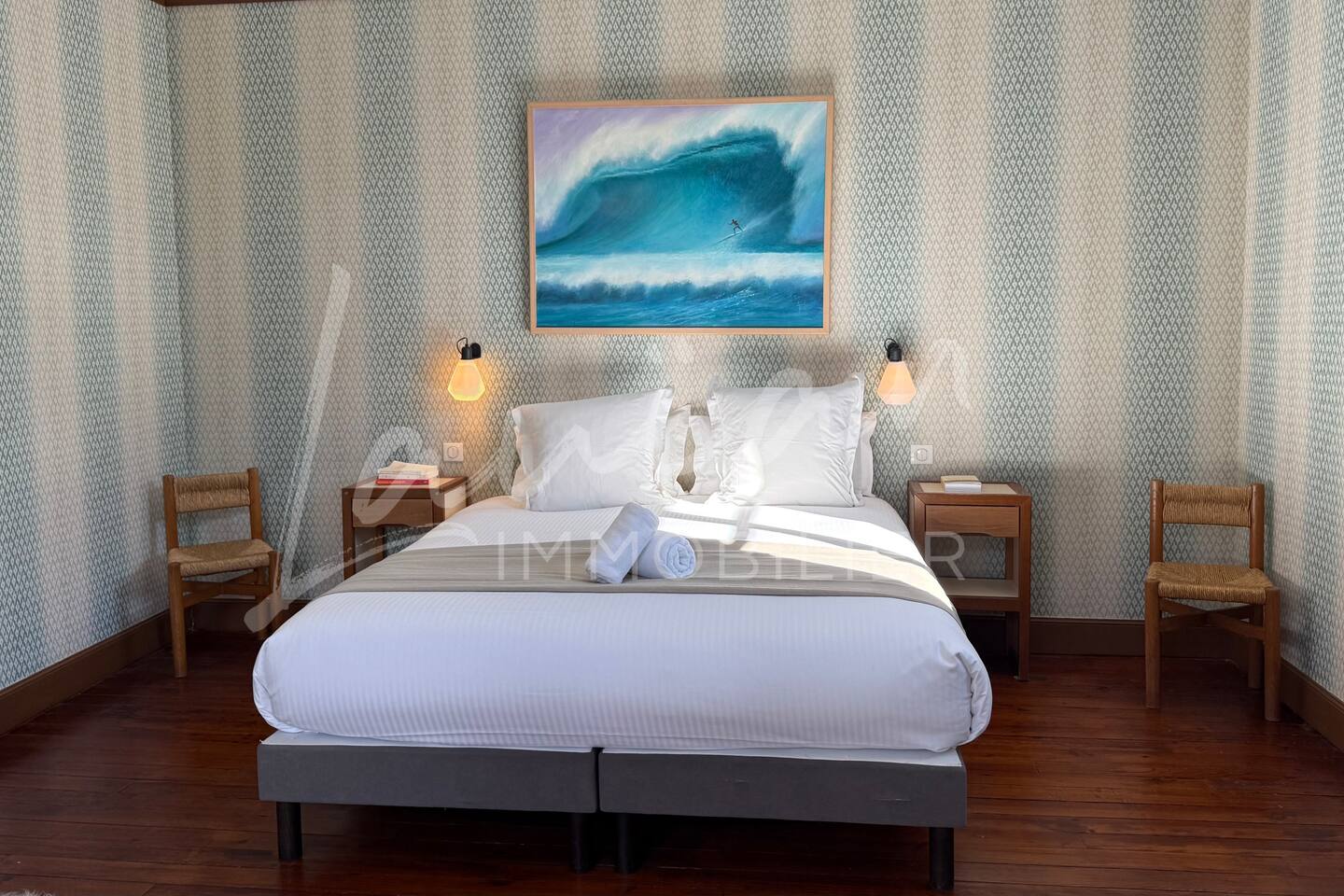 Dès l’arrivée, le parc séduit par son bassin d’agrément d’origine, son potager et ses prairies voisines, créant une atmosphère bucolique rare dans la région. Un intérieur raffiné et spacieux Dès l’entrée, le petit salon d’accueil annonce l’ambiance chaleureuse et conviviale de la maison. Il abrite l’escalier en bois d’époque, permettant d’accéder aux chambres, tout en offrant un espace de rangement idéal pour les vestiaires des invités. Les pièces à vivre se succèdent en douceur : Deux salons en enfilade, ouverts sur la terrasse et le parc, où la lumière naturelle inonde l’espace. Le salon principal, plus formel, précède un salon TV plus intime, parfait pour des soirées détente. Une grande salle à manger, avec un coin bureau, où l’atmosphère élégante est propice aux repas conviviaux. Une imposante cuisine à l’ancienne, véritable pièce maîtresse de la maison. Équipée d’un piano de cuisson professionnel, d’une vaisselle raffinée et d’un électroménager haut de gamme, elle ravira les amateurs de gastronomie. Sa cheminée ancienne et son espace repas en font un lieu de vie privilégié. Des espaces nuit bien distincts La Villa Chocomaitea dispose de 4 chambres, pouvant accueillir jusqu’à 8 personnes, réparties sur deux espaces distincts : L’étage principal - Les chambres principales Chambre 1 : Suite parentale avec lit king size (180 cm), dressing et une grande salle de bain complète (baignoire, douche et WC) Chambre 2 : Lit queen size (160 cm) Chambre 3 : Lit king size (180 cm) modulable en deux lits simples en 90 cm, selon les besoins Une salle d’eau indépendante Un WC séparé Le rez-de-jardin - Un appartement autonome Chambre 4 : Accessible par l’arrière de la cuisine, cette chambre mansardée offre un espace indépendant , une salle d’eau avec WC et un lit queen size (160 cm), idéal pour plus d’intimité. Une grande buanderie avec lave-linge, sèche-linge et table à repasser est disponible au deuxième et dernier étage. Un extérieur enchanteur Le vaste jardin de la propriété offre un cadre exceptionnel pour profiter de l’air libre : Piscine chauffée, entourée de transats pour des moments de détente Grande terrasse aménagée, avec différents espaces pensés pour chaque moment de la journée Coin repas sous la tonnelle, décoré de lampions, parfait pour des dîners sous les étoiles Espace salon en façade, idéal pour les après-midis ensoleillés Grande plancha, pour des repas conviviaux en extérieur Dispositif anti-moustiques efficace, pour des soirées en toute tranquillité Services et confort Présence d’une employée de maison, logée sur place en toute indépendance, assurant 10 heures de ménage par semaine Possibilité d’heures de ménage supplémentaires sur demande à la charge du locataire. Entretien hebdomadaire du jardin et de la piscine Linge de maison fourni Potager à disposition, avec tomates et piments frais Poulailler avec œufs frais à disposition des locataires Les animaux de compagnie ne sont pas acceptés afin de préserver l’équilibre du lieu. Une maison où luxe et nature se rencontrent La Villa Harrietta est une demeure d’exception où chaque détail a été pensé pour offrir une expérience unique. Entre prestige, confort et sérénité, c’est un lieu idéal pour se retrouver et profiter pleinement de Biarritz et de la Côte Basque.